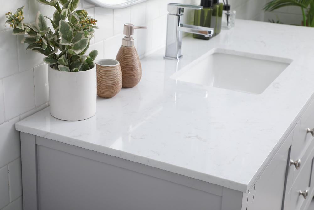 Displaying a chic straight edge cut and crafted with precision, our vanity boasts an engineered marble top that adds a dash of modern elegance to your space.