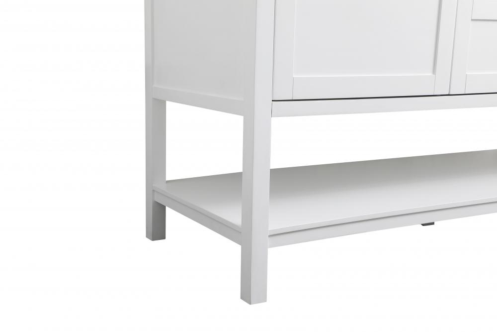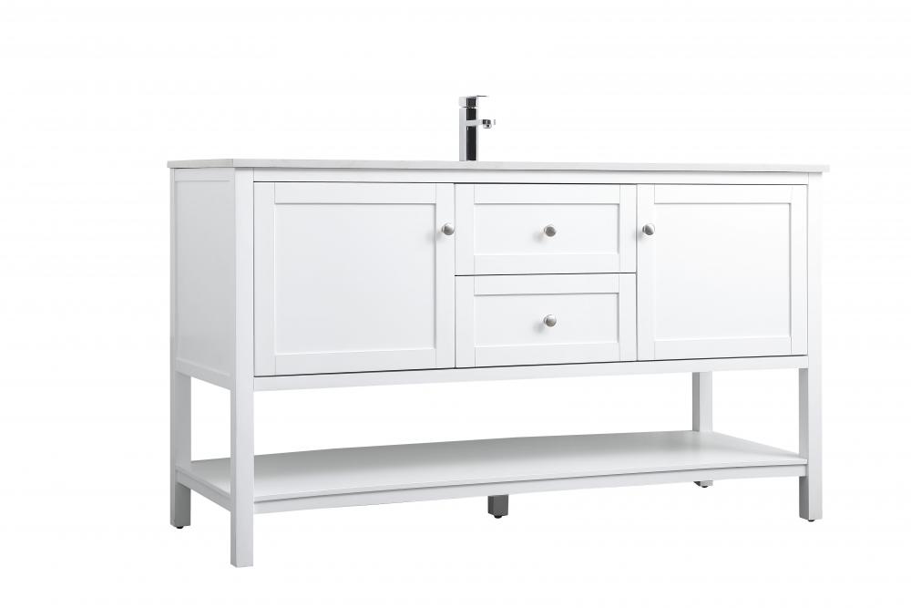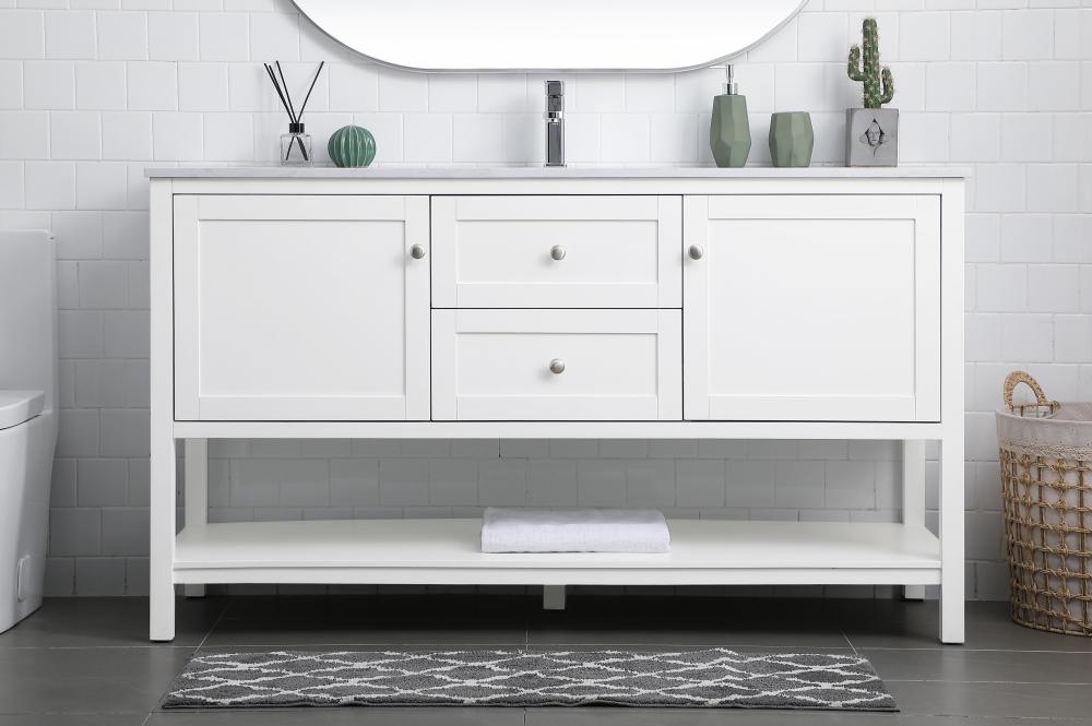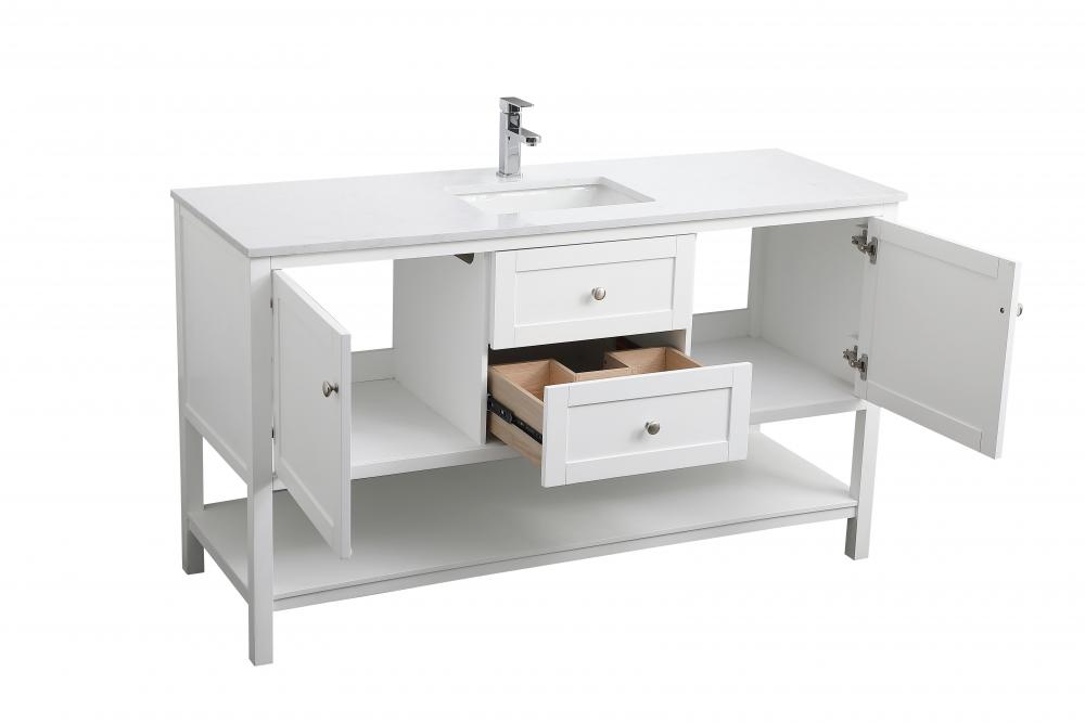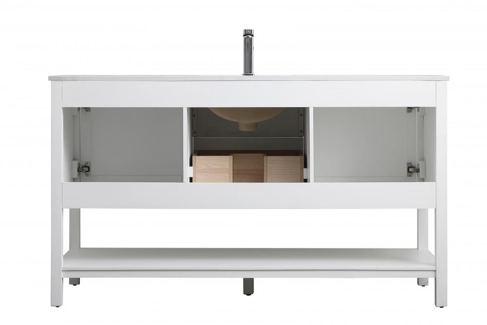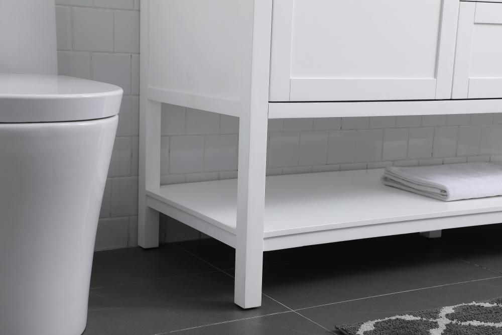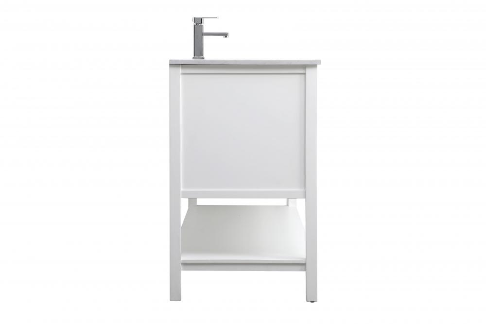 Boasting a lower open shelf for additional storage, this vanity offers a practical area to display decor or stow away essentials, seamlessly blending functionality with a touch of style for your bathroom.