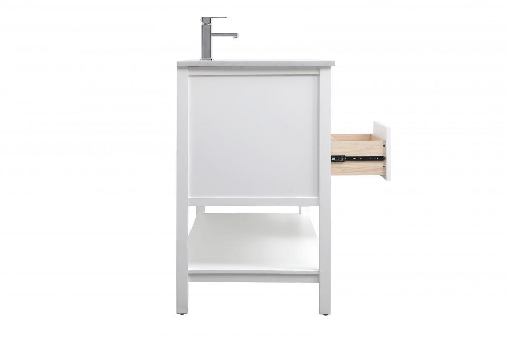 Displaying a chic straight edge cut and crafted with precision, our vanity boasts an engineered marble top that adds a dash of modern elegance to your space.