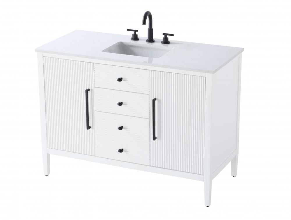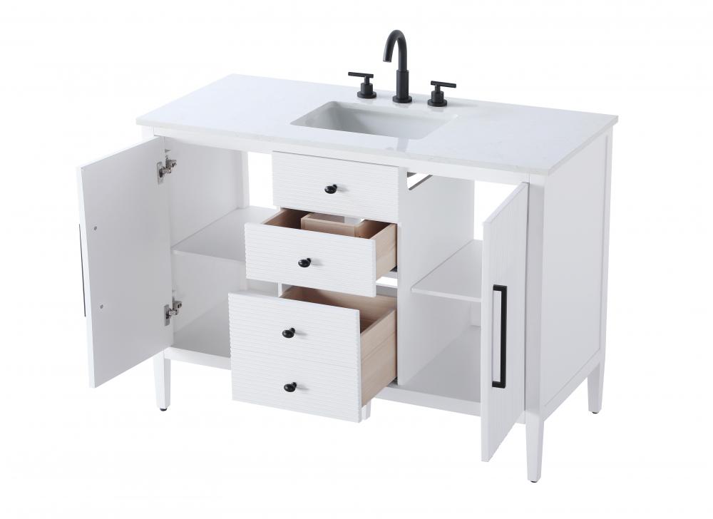 The textured fluted design on the door and drawer panels adds visual interest and elegance, creating a balance of classic charm and contemporary style.