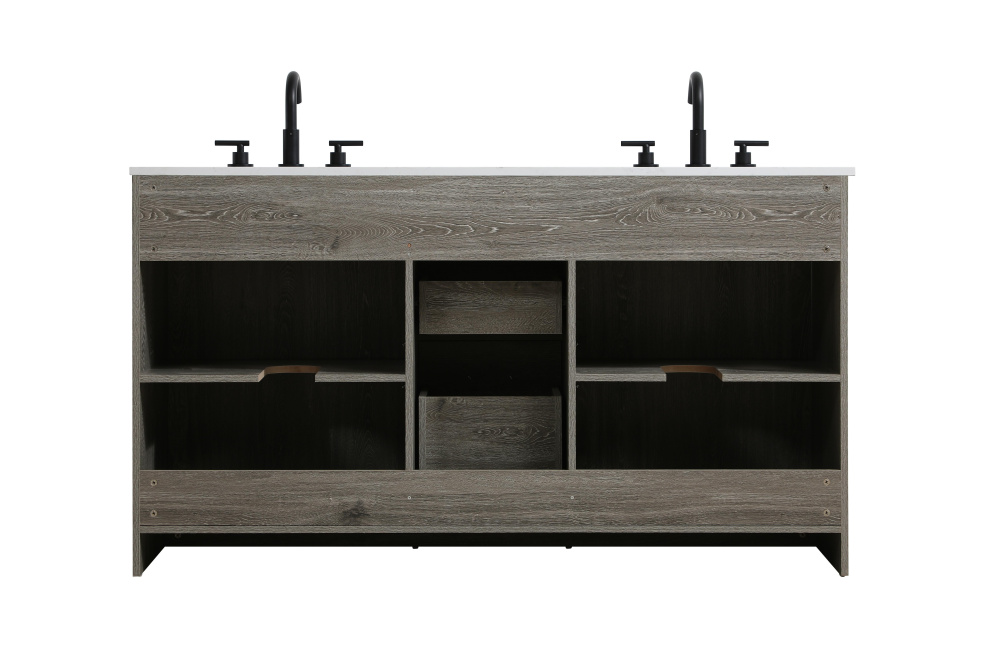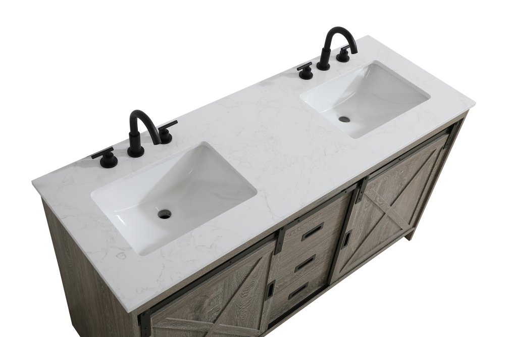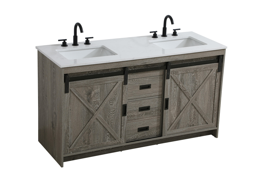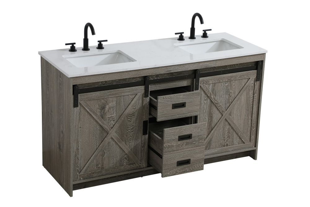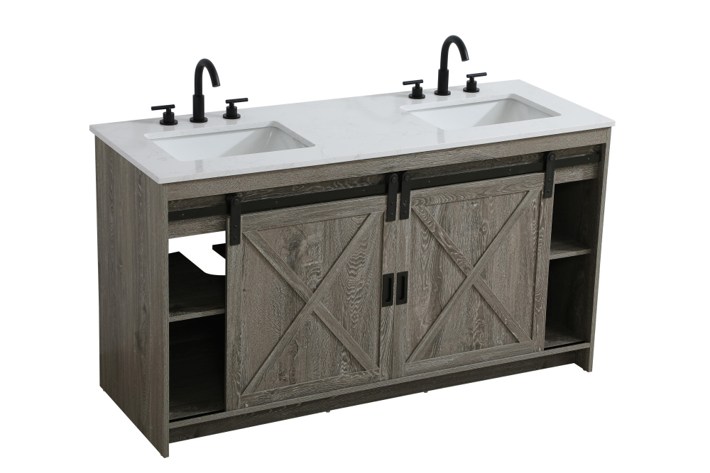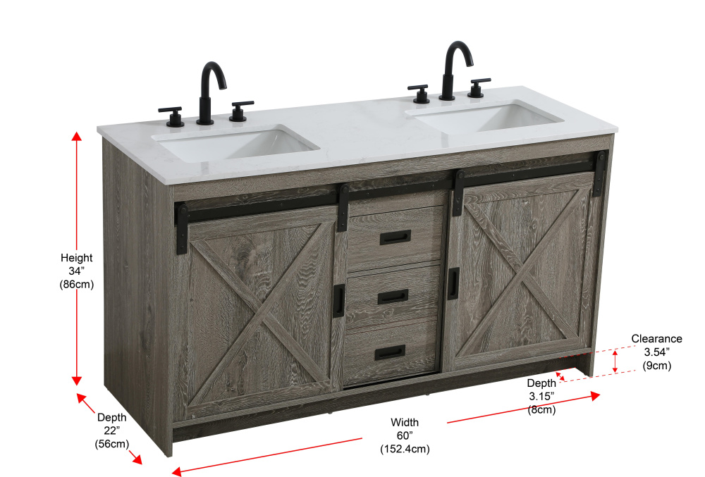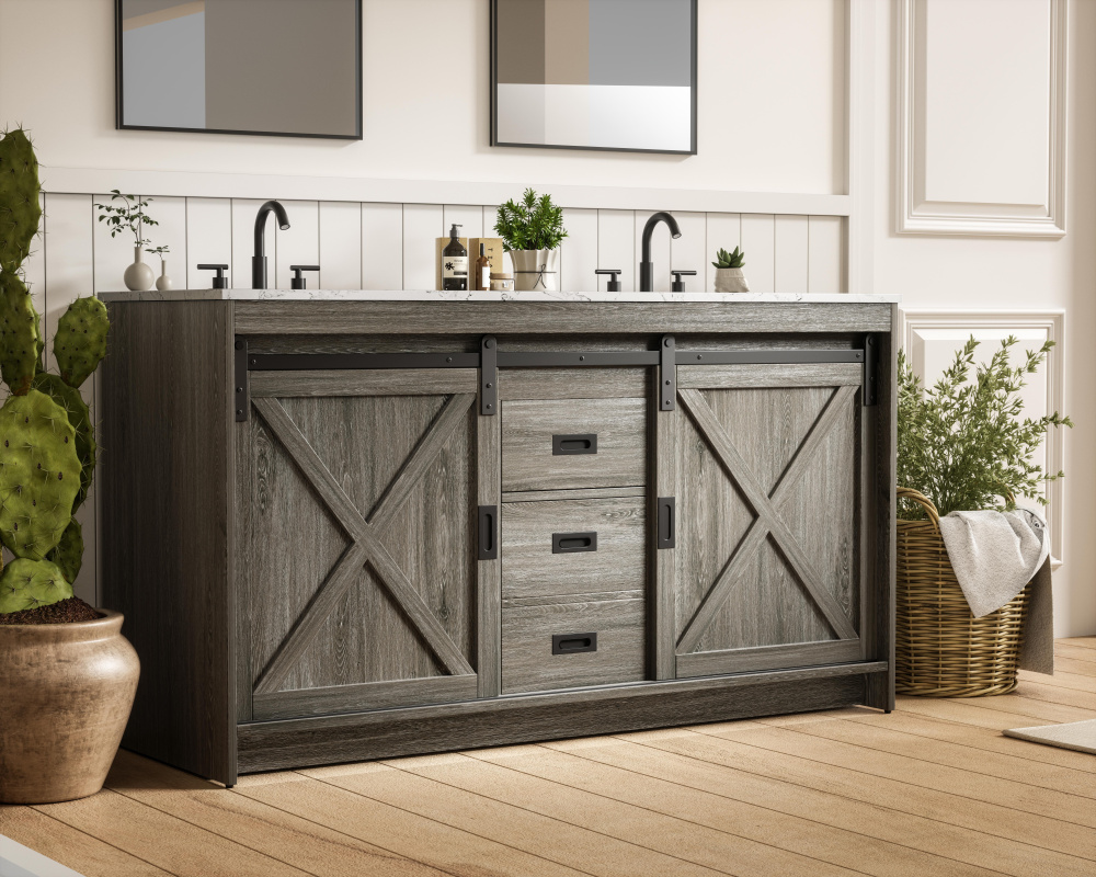 Transform your bathroom with this rustic barnyard-style vanity, designed to balance aesthetic appeal and functionality. Featuring a sliding barn door with black metal hardware and complementary handle pulls, this piece blends rugged charm with practical design. The engineered marble countertop displays unique marbling, while the porcelain undermount sink offers easy maintenance and durability. Available in Espresso, Natural Oak, and Rustic Grey finishes, this vanity suits a range of styles. It includes a deep storage drawer for larger items, a hidden shelf for towels or décor, and adjustable foot levelers for added stability on uneven floors. With pre-drilled faucet holes for easy setup, this vanity delivers style and substance to enhance your bathroom.