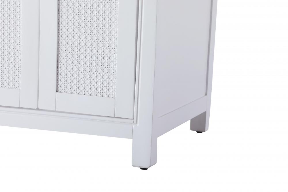 The shaker-style door panels feature a subtle caning design, adding texture and visual interest while maintaining a clean and timeless aesthetic.