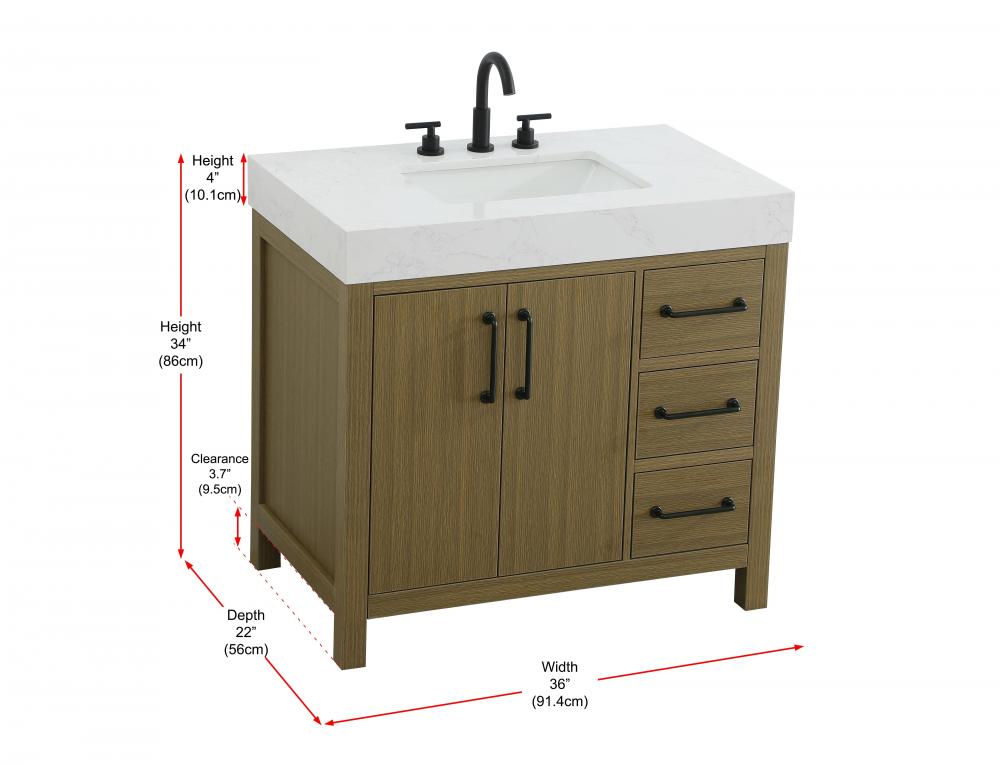 Vanity Cabinet 2DR 3DW 36"W x 22"D x 34"H Chestnut Brown