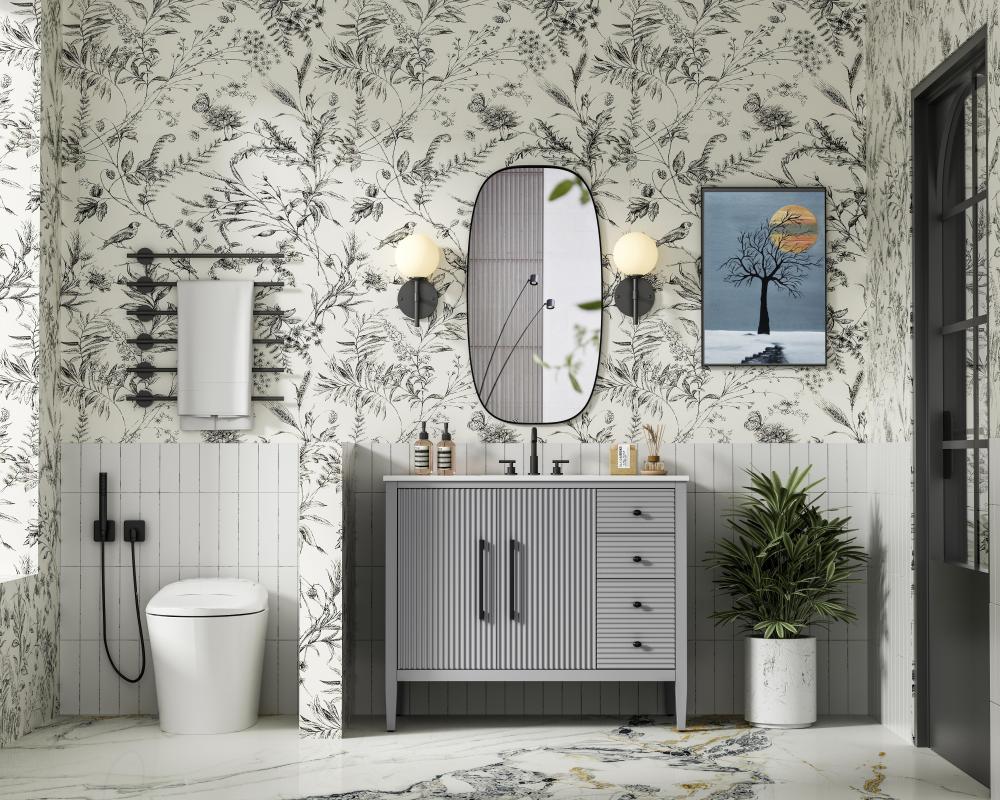 Designed with transitional elegance in mind, this bathroom vanity seamlessly blends traditional elements with modern functionality. Available in five stunning finishes, from the clean sophistication of Crisp White to the natural warmth of Honey Oak, the fluted door and drawer panels add subtle texture and charm. The white engineered marble countertop with natural veining exudes luxury, while the soft-closing doors and drawers with sleek black metal pulls offer a quiet, refined experience. Practicality is never compromised, with features like the U-shaped shelf for plumbing, deeper bottom drawer for ample storage, and pre-drilled faucet holes for easy customization. Whether your style leans modern or classic, this vanity is the perfect balance of beauty and function, appealing to customers with a taste for quality and style.