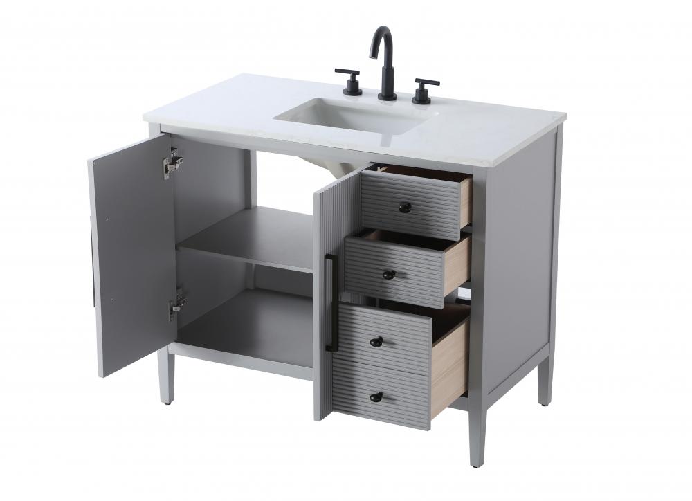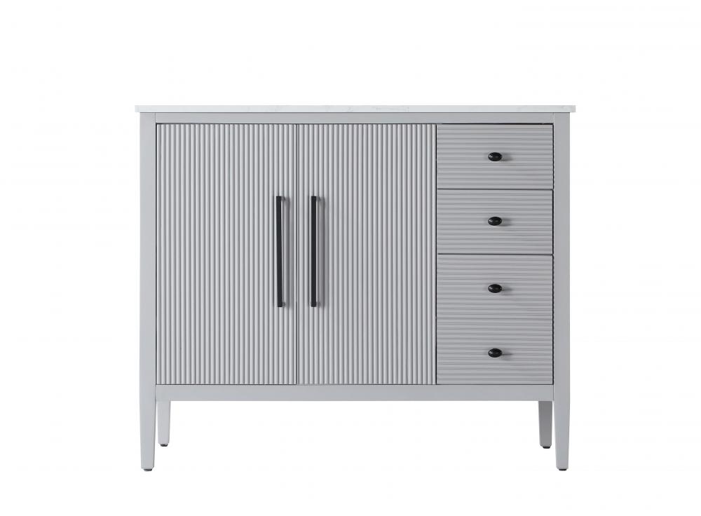 The textured fluted design on the door and drawer panels adds visual interest and elegance, creating a balance of classic charm and contemporary style.
