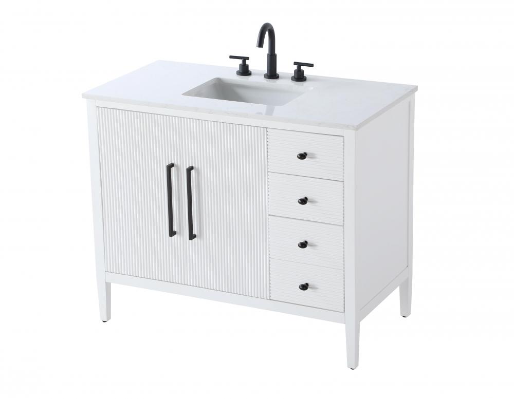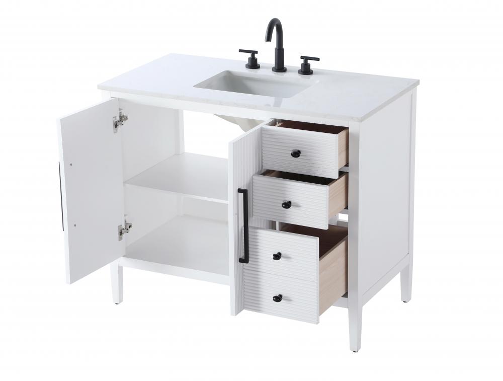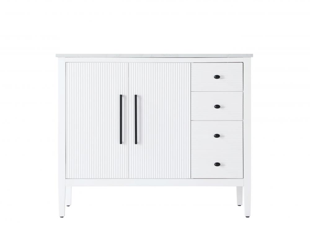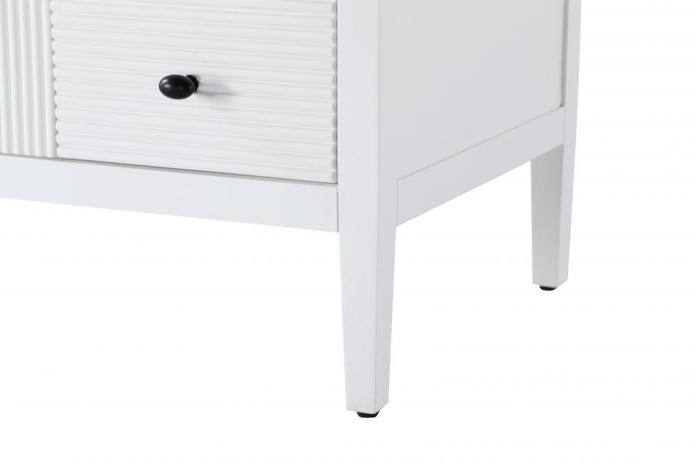 The textured fluted design on the door and drawer panels adds visual interest and elegance, creating a balance of classic charm and contemporary style.