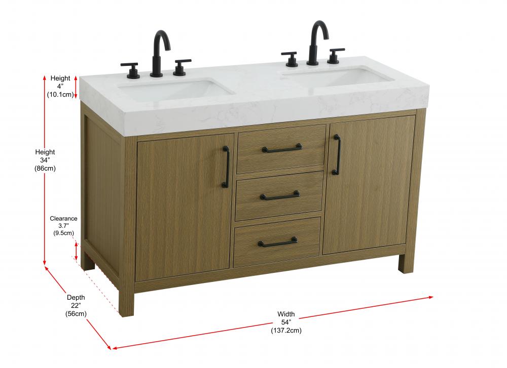 Vanity Cabinet 2DR 3DW 54"W x 22"D x 34"H Chestnut Brown
