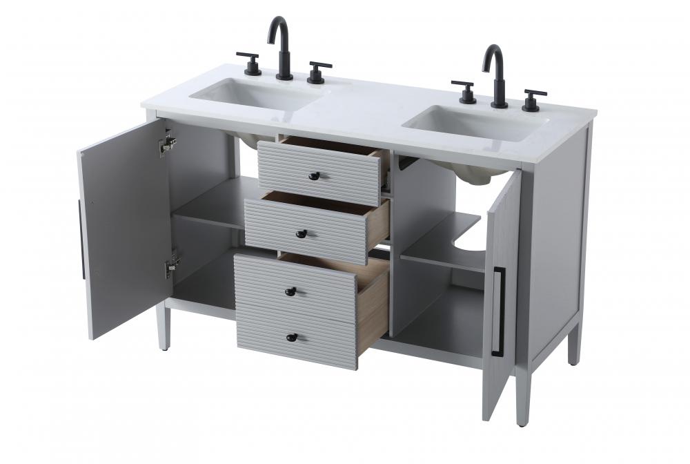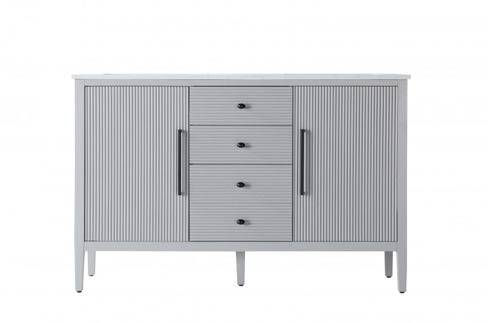 The textured fluted design on the door and drawer panels adds visual interest and elegance, creating a balance of classic charm and contemporary style.