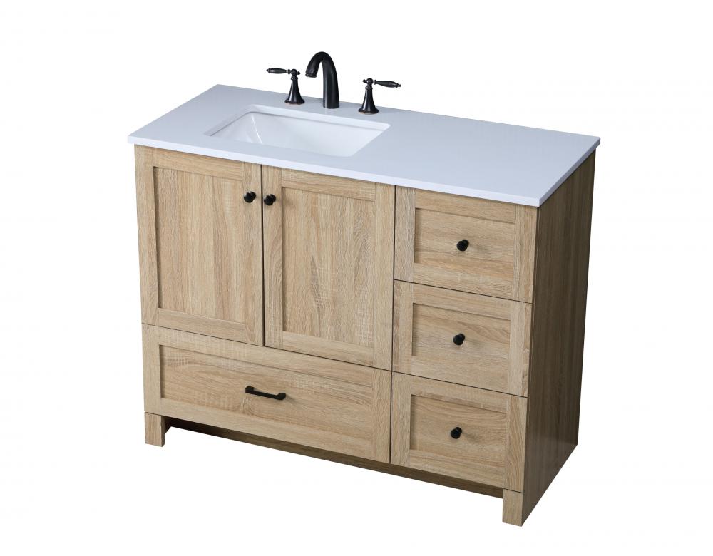 Revel in the beauty of a vanity that mimics the charm of real wood without the maintenance, boasting a faux wood look that adds a touch of natural warmth and rustic sophistication to your bathroom.
