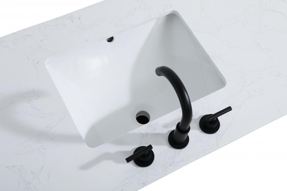 Topped with a thick, 4-inch white engineered marble countertop featuring natural veining, this vanity combines luxurious aesthetics with durability.