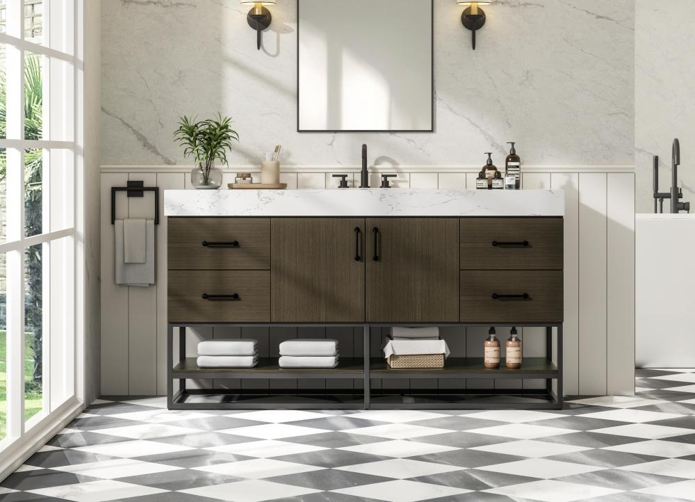 Flat panel designs create a minimalist and modern look, giving the vanity clean lines while maintaining a subtle, farmhouse-inspired charm.