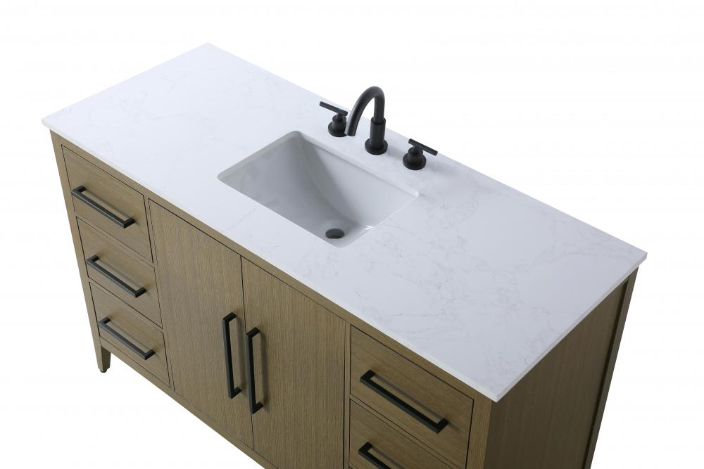 Topped with a white engineered marble countertop featuring elegant veining, this vanity adds a luxurious yet durable surface that’s easy to maintain.