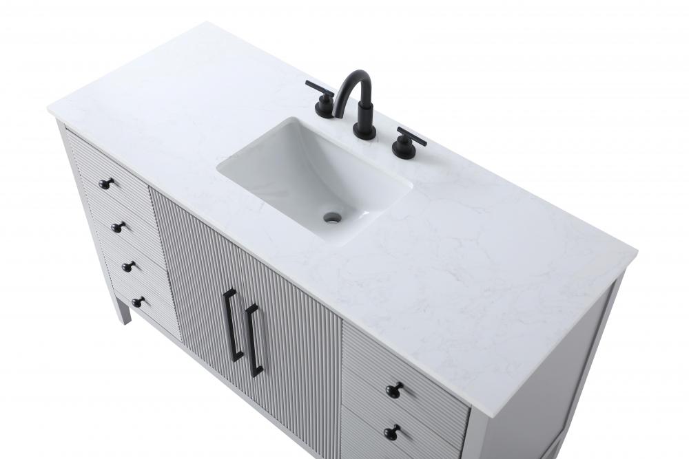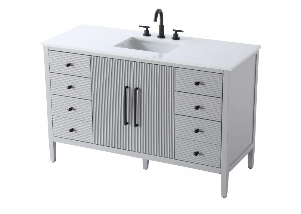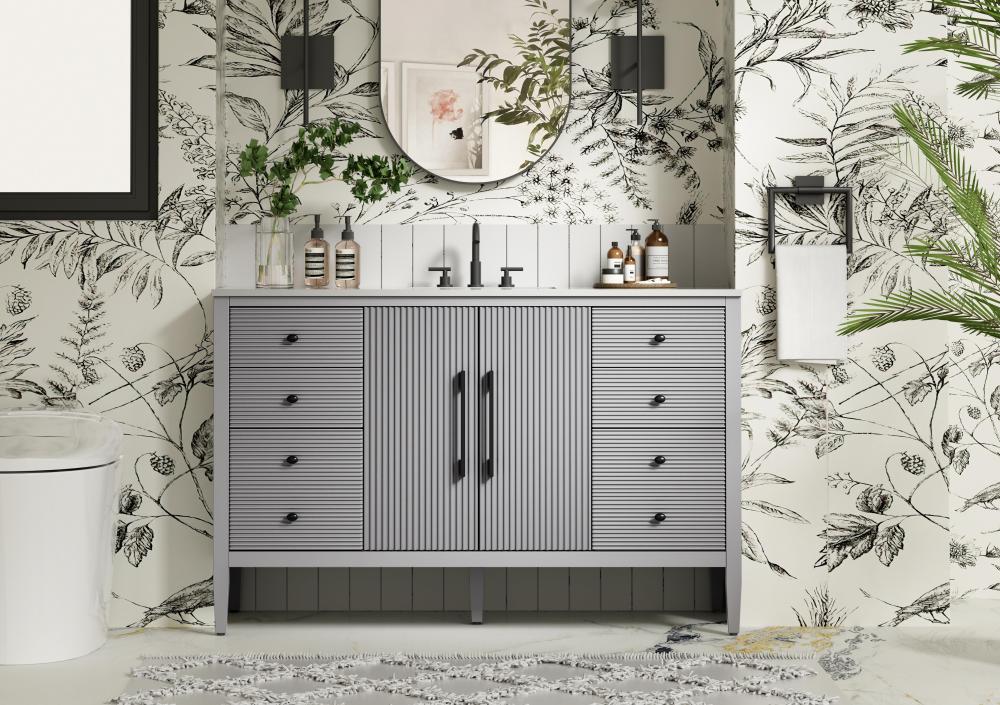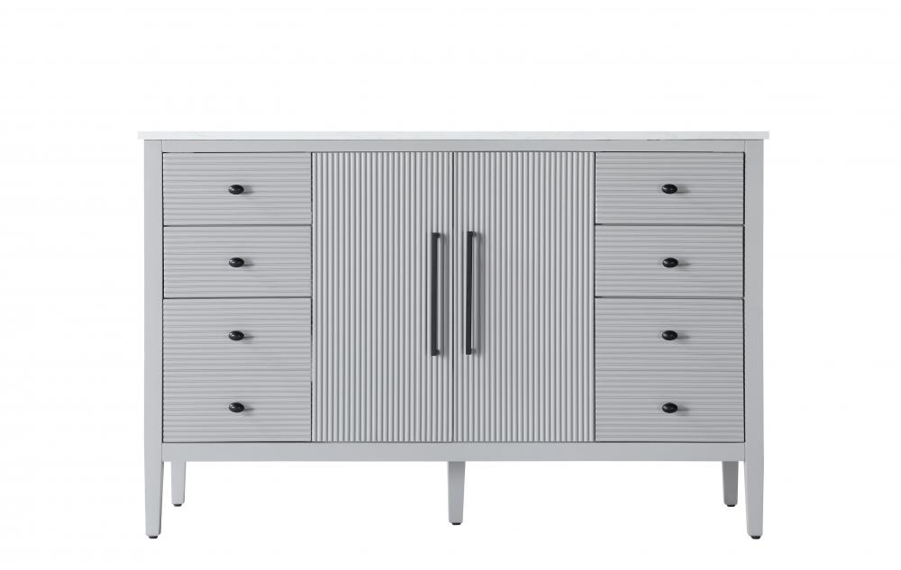 The textured fluted design on the door and drawer panels adds visual interest and elegance, creating a balance of classic charm and contemporary style.
