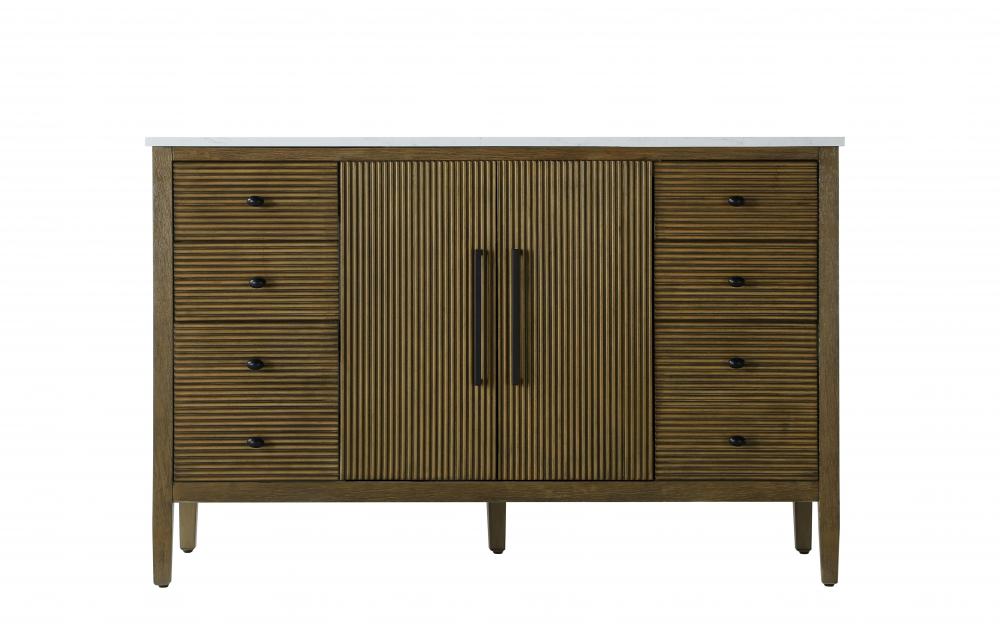 The textured fluted design on the door and drawer panels adds visual interest and elegance, creating a balance of classic charm and contemporary style.