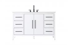 Bring both elegance and practicality to your bathroom with this transitional vanity, available in a selection of rich finishes that highlight the beauty of faux wood grain in shades of mocha, chestnut, and honey, along with classic white and modern grey. The flat door panels and sleek black metal pulls create a minimalist yet refined aesthetic, while the soft-closing drawers and tapered legs with levelers provide smooth, functional operation. Topped with a luxurious white engineered marble countertop and featuring a porcelain sink, this vanity combines timeless style with modern efficiency. Thoughtfully designed with U-shaped cutout for plumbing, it offers ample storage and easy installation, making it the perfect centerpiece for any bathroom.