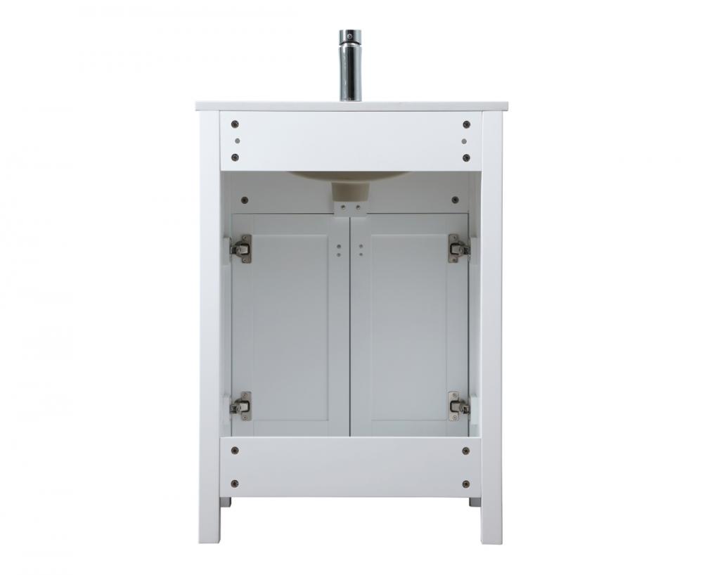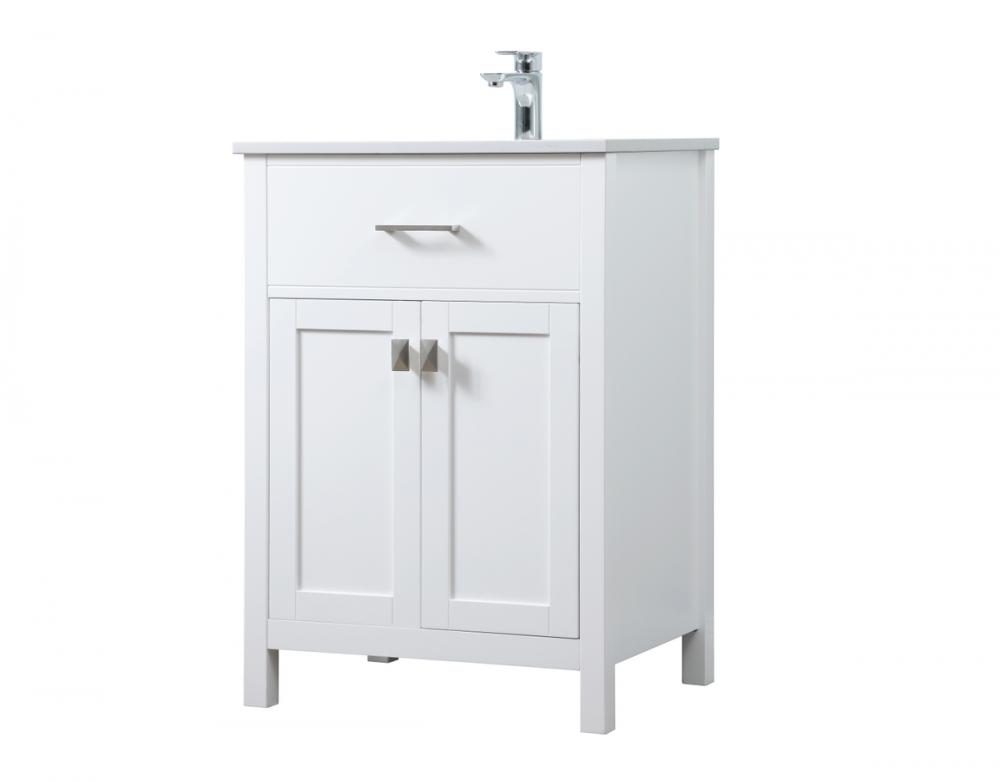 Elevate your bathroom aesthetic with our precision-crafted 24-inch vanity, featuring a chic straight edge cut and an engineered marble top that infuses a dash of modern elegance into your space. Designed for seamless access and ample storage, the vanity showcases a single functional cabinet paired with a faux top drawer, both adorned with soft-close doors. The sophisticated undermount porcelain sink seamlessly merges style with practicality, while the inclusion of stylish hardware adds a personalized touch and ensures convenient access to storage. Boasting a lower open shelf for additional storage, this vanity seamlessly blends functionality with style, providing a practical area for decor or essentials. Complete with a single pre-drilled hole for seamless faucet installation, our versatile vanity allows you to effortlessly personalize your bathroom, adding a final touch of elegance to your unique space. Redefine your bathroom experience with this stylish and functional addition.
