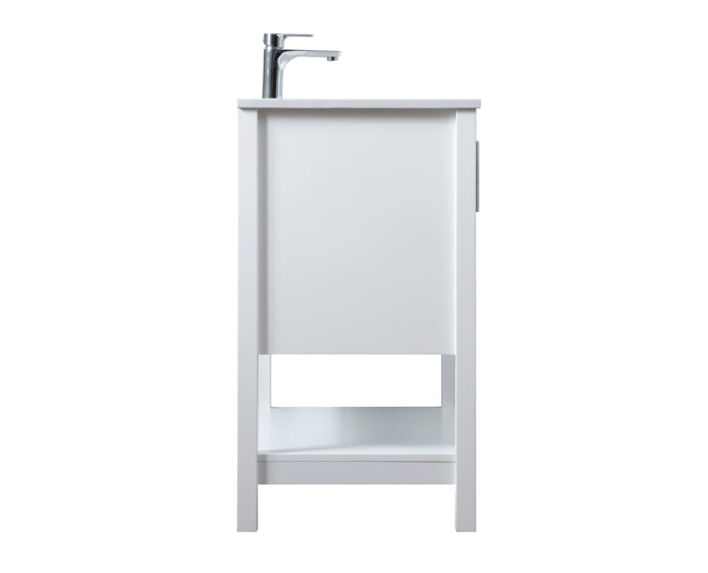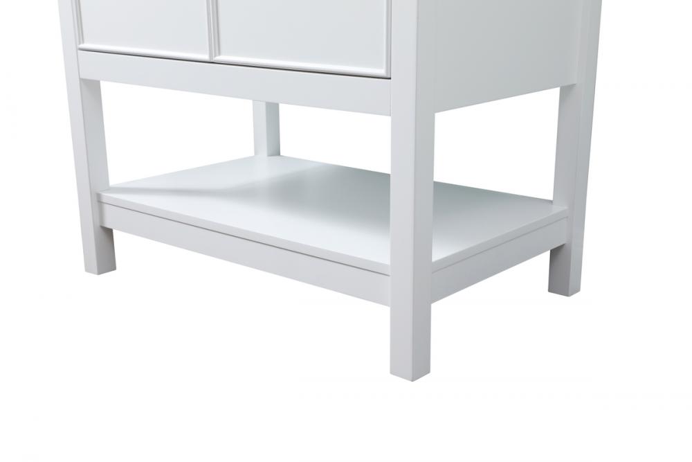 Boasting a lower open shelf for additional storage, this vanity offers a practical area to display decor or stow away essentials, seamlessly blending functionality with a touch of style for your bathroom.