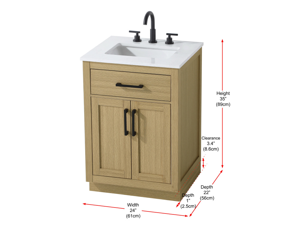 Vanity Cabinet 2Dr1Dw 24"W x 22"D x 35''H Honey Brown