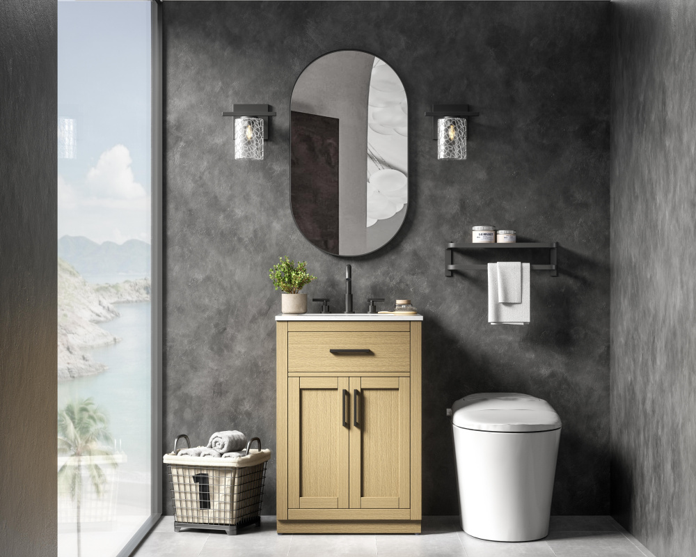 Perfectly suited for transitional and contemporary bathroom designs, this vanity seamlessly blends rustic and modern elements while being crafted from solid wood and MDF for exceptional durability and strength.