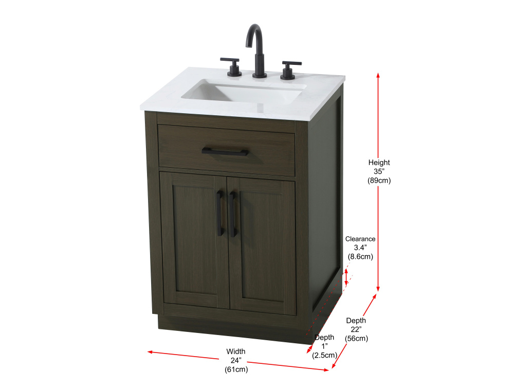 Vanity Cabinet 2Dr1Dw 24"W x 22"D x 35''H Mocha Brown