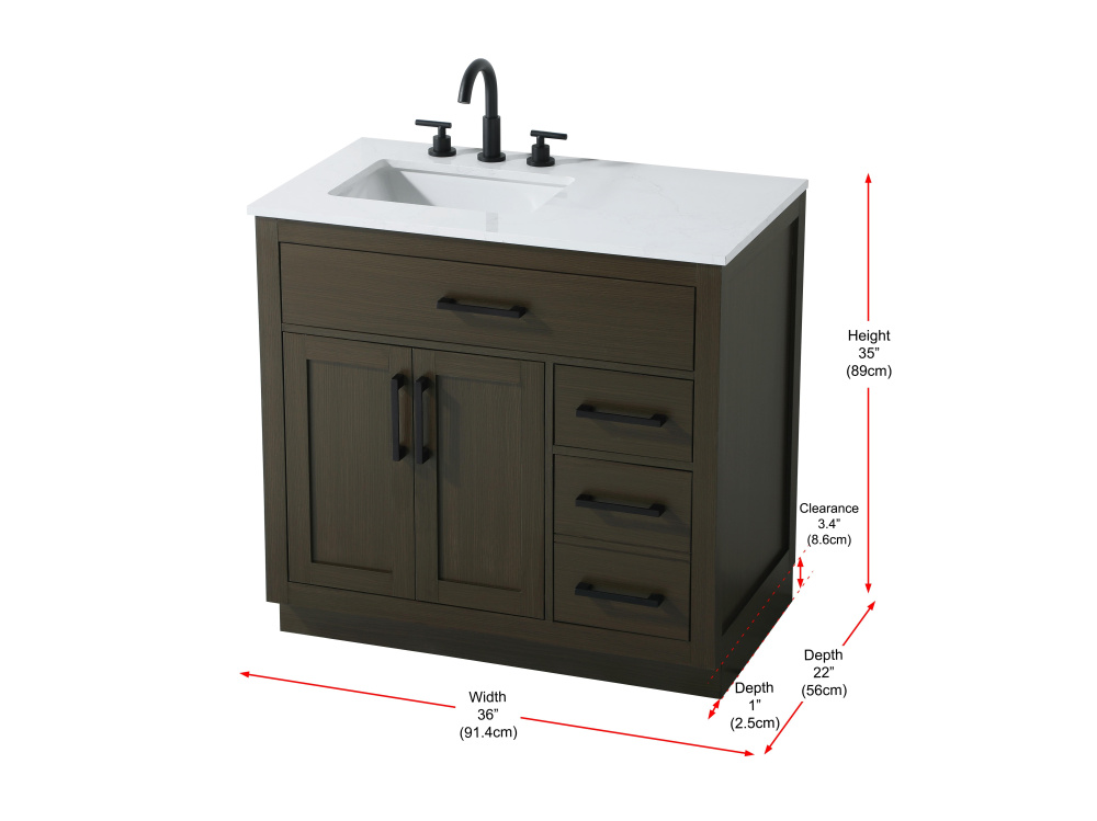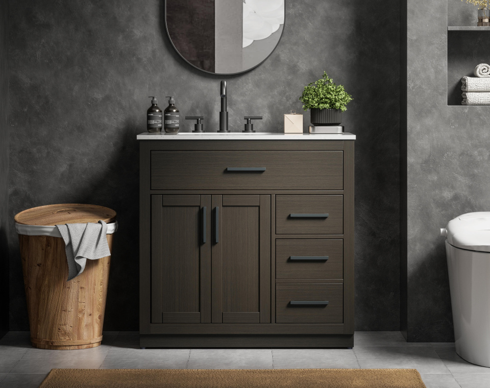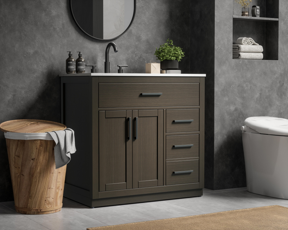 Vanity Cabinet 2Dr3Dw 36"W x 22"D x 35''H Mocha Brown