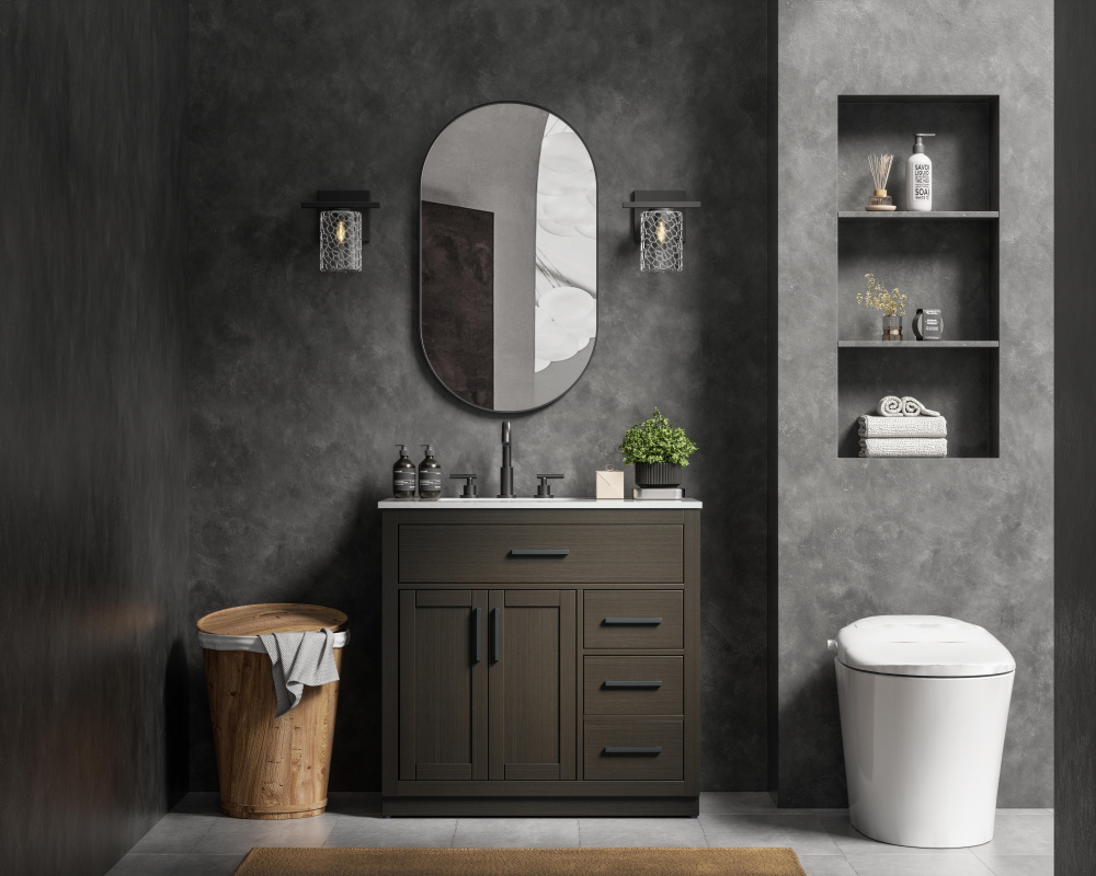 Perfectly suited for transitional and contemporary bathroom designs, this vanity seamlessly blends rustic and modern elements while being crafted from solid wood and MDF for exceptional durability and strength.