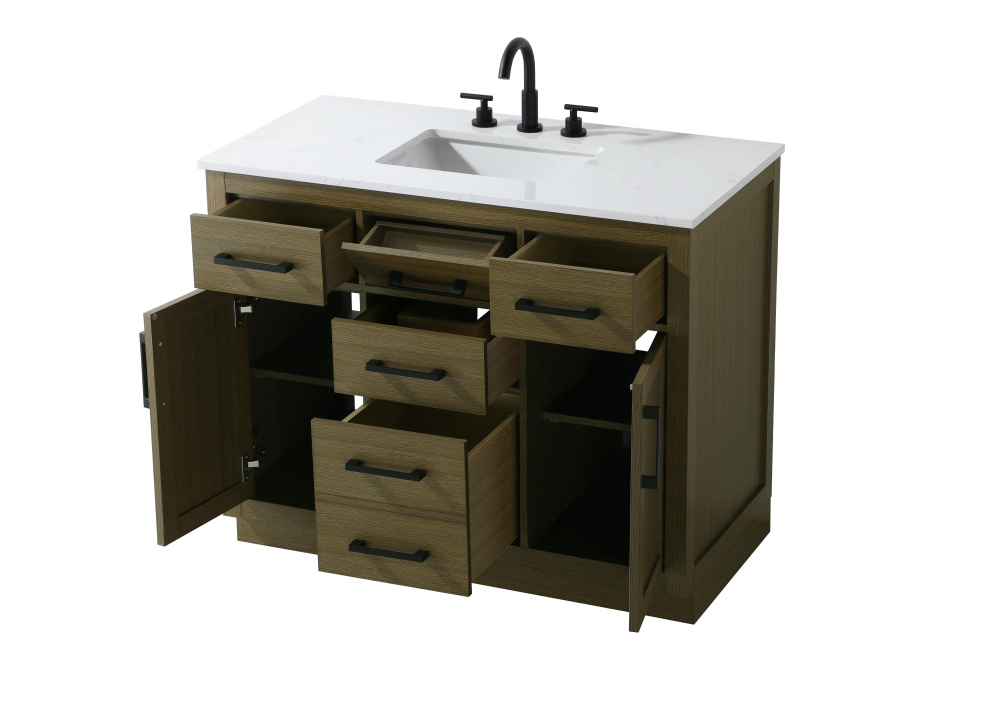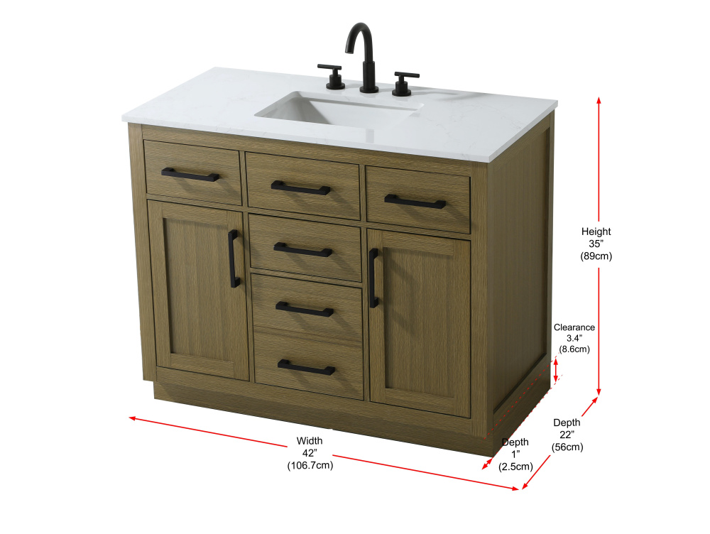Vanity Cabinet 2Dr5Dw 42"W x 22"D x 35''H Chestnut Brown