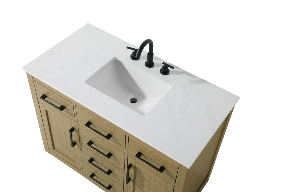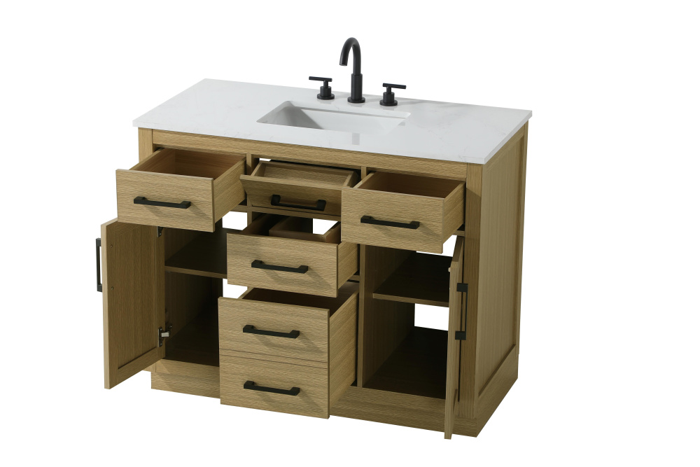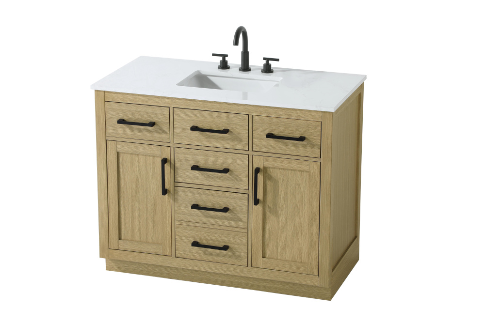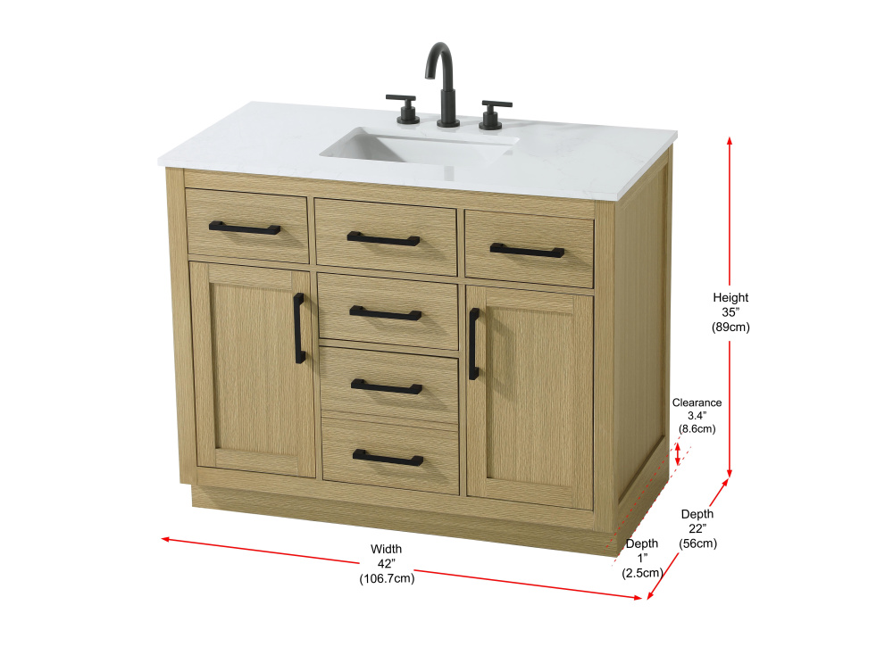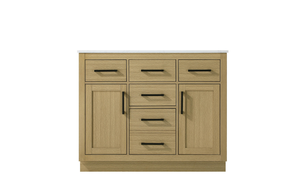 Vanity Cabinet 2Dr5Dw 42"W x 22"D x 35''H Honey Brown