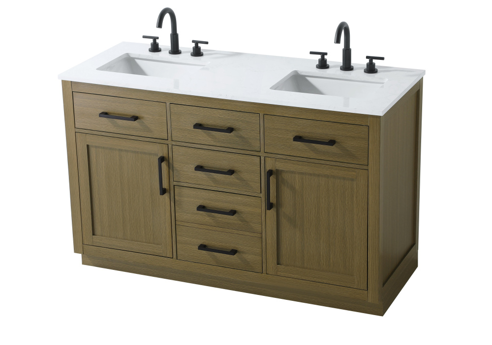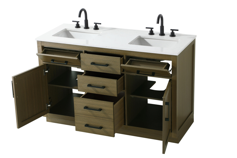 Vanity Cabinet 2Dr5Dw 54"W x 22"D x 35''H Chestnut Brown
