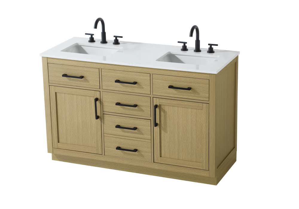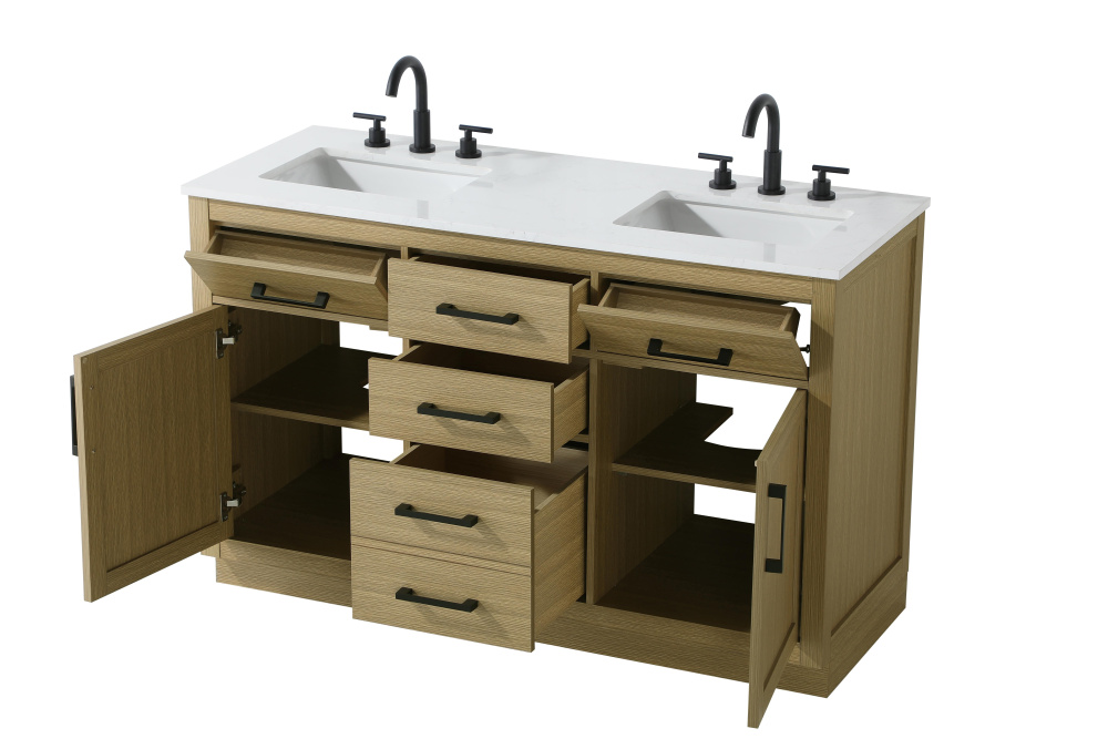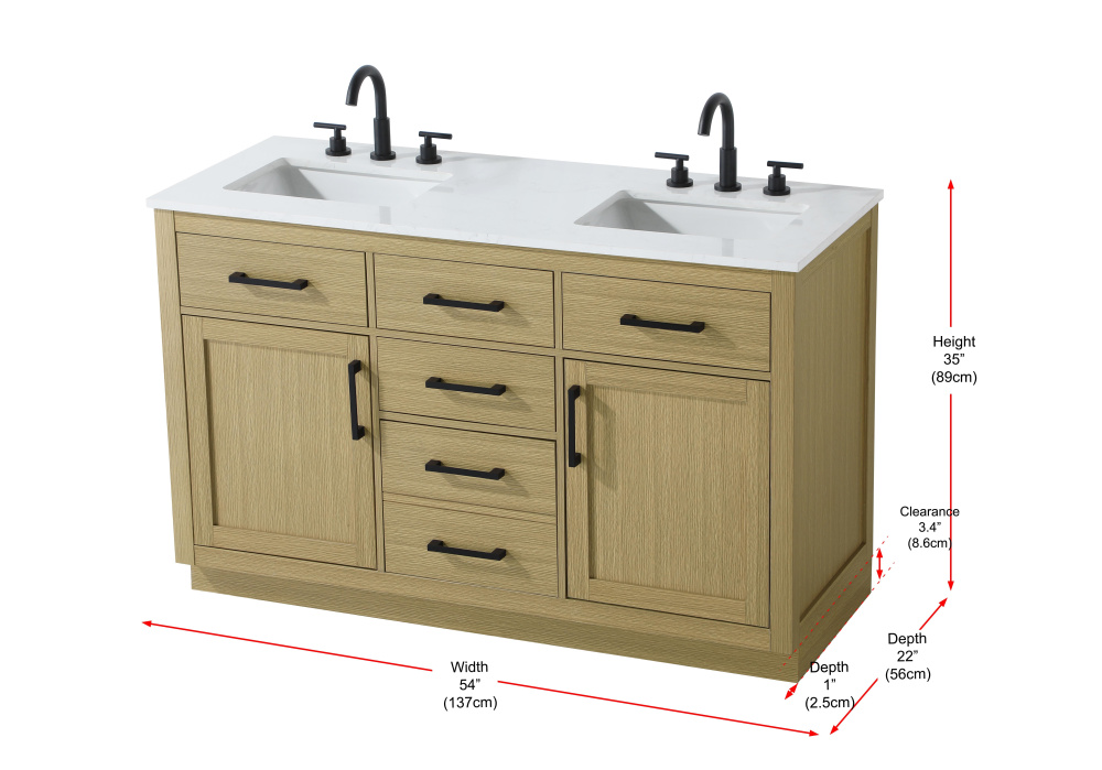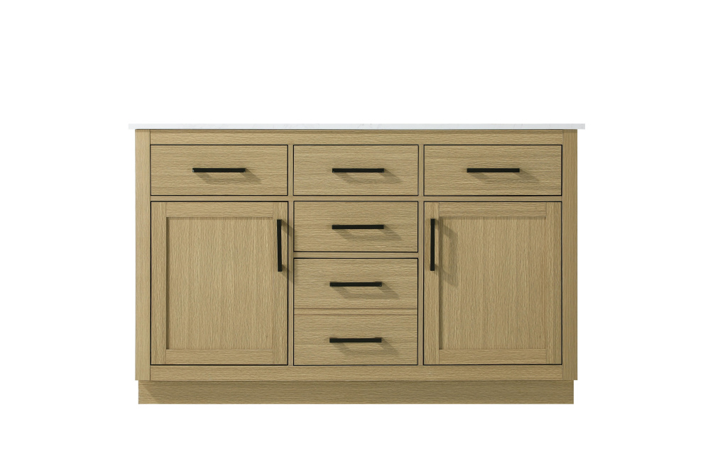 Vanity Cabinet 2Dr5Dw 54"W x 22"D x 35''H Honey Brown