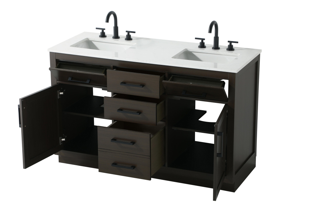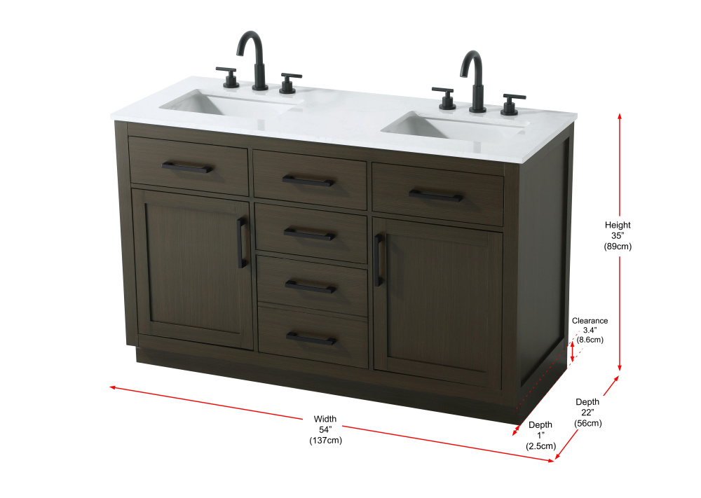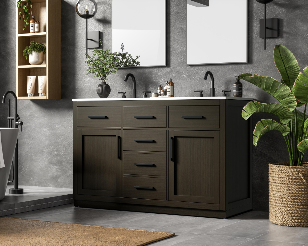 Vanity Cabinet 2Dr5Dw 54"W x 22"D x 35''H Mocha Brown