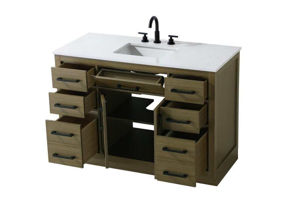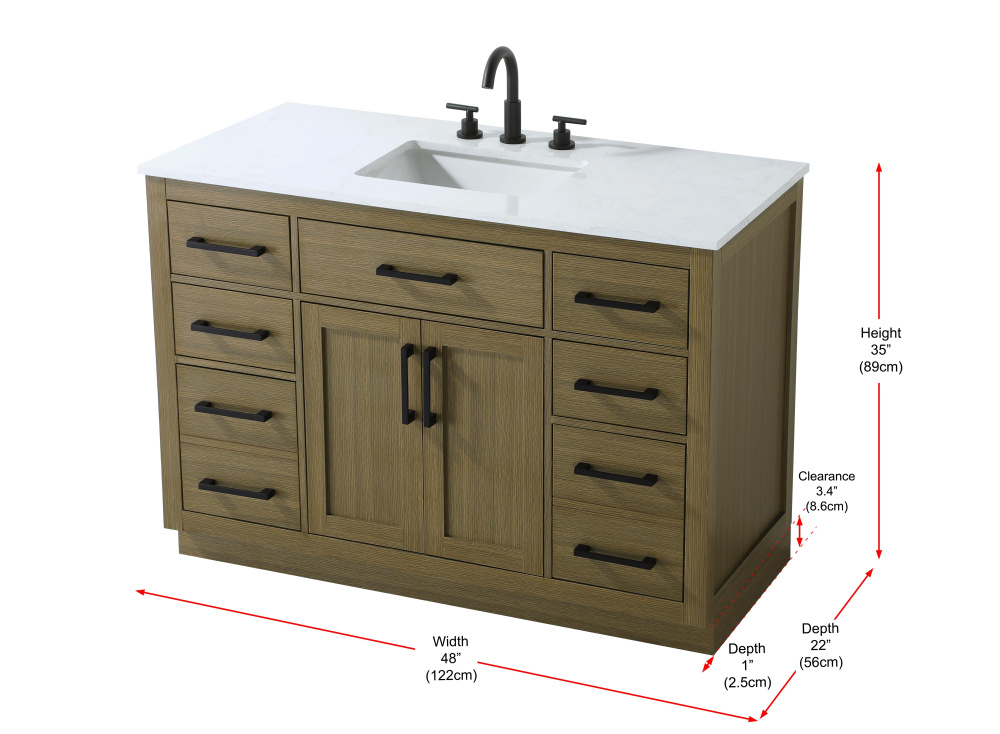 Vanity Cabinet 2Dr7Dw 48"W x 22"D x 35''H Chestnut Brown