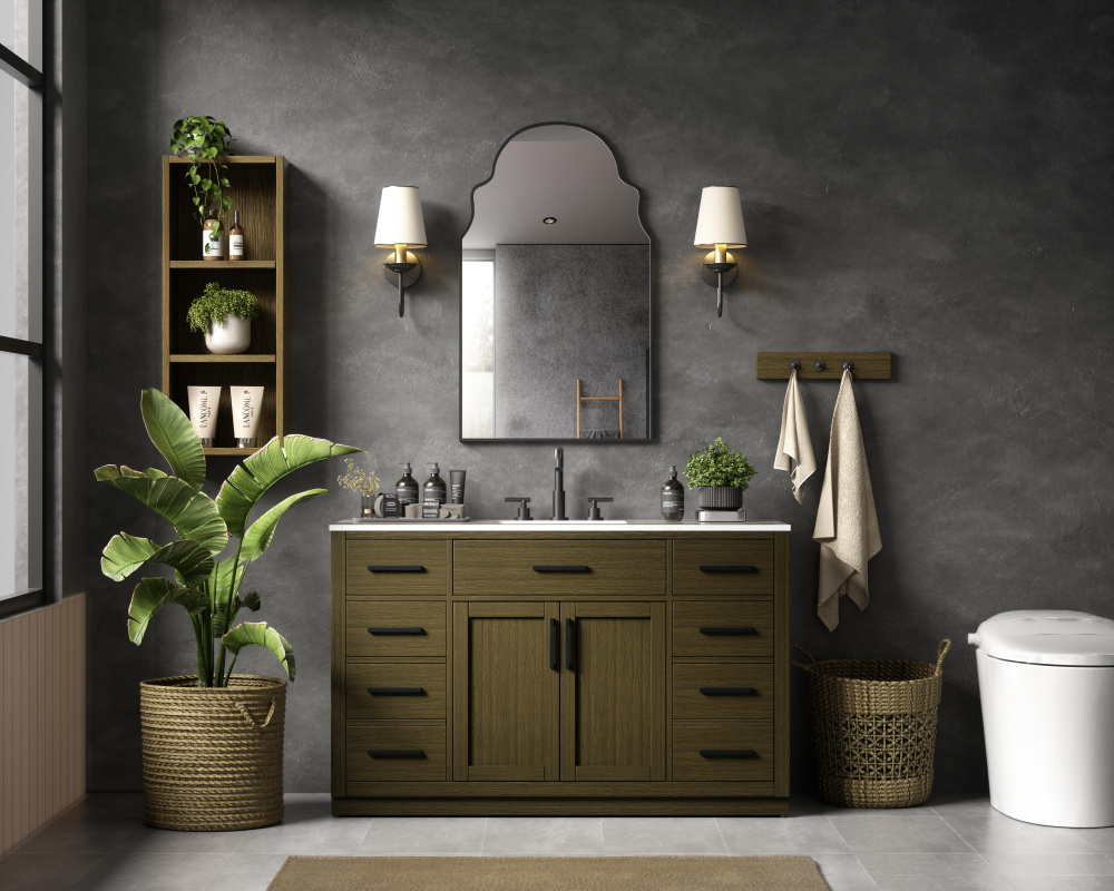 Perfectly suited for transitional and contemporary bathroom designs, this vanity seamlessly blends rustic and modern elements while being crafted from solid wood and MDF for exceptional durability and strength.
