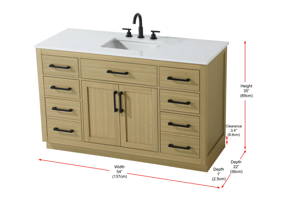 Vanity Cabinet 2Dr7Dw 54"W x 22"D x 35''H Honey Brown