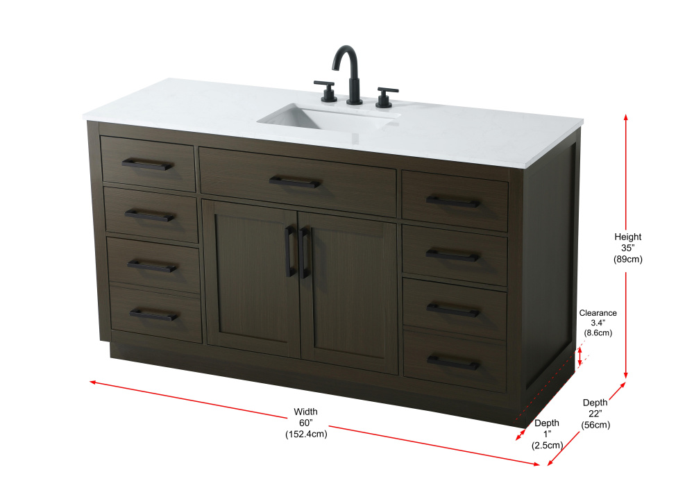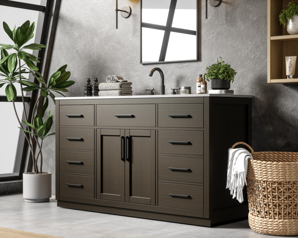 Vanity Cabinet 2Dr7Dw 60"W x 22"D x 35''H Mocha Brown