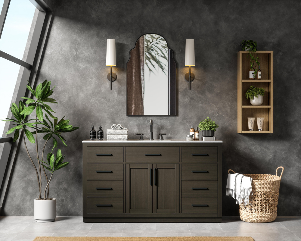 Perfectly suited for transitional and contemporary bathroom designs, this vanity seamlessly blends rustic and modern elements while being crafted from solid wood and MDF for exceptional durability and strength.