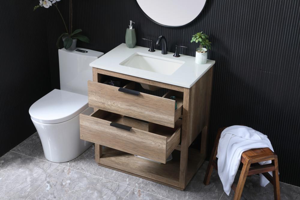 Adorned with 2 sleek pulls, our stylish vanity brings a modern touch to your space, enhancing the overall aesthetic of your bathroom.