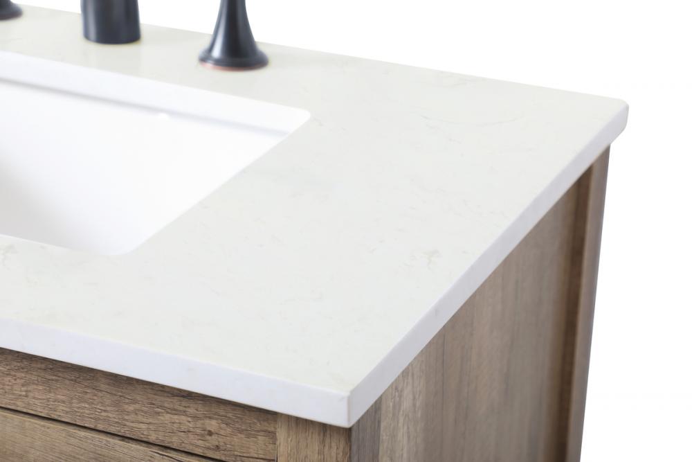 Elevate your bathroom effortlessly with our stylish vanity. Featuring an engineered marble top and chic straight edge cut, it brings a touch of modern elegance. The two soft-close drawers are adorned with sleek pulls, which offer both convenient storage and a contemporary aesthetic. Completing the ensemble, an undermount porcelain sink adds timeless charm. The vanity's open shelf at the bottom provides extra storage and a space to showcase decor. As a freestanding unit, this hassle-free solution requires no assembly. Customize your space effortlessly with this sophisticated option for instant bathroom elegance.