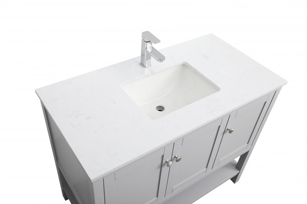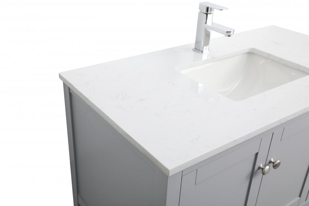 Displaying a chic straight edge cut and crafted with precision, our vanity boasts an engineered marble top that adds a dash of modern elegance to your space.