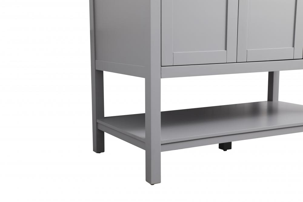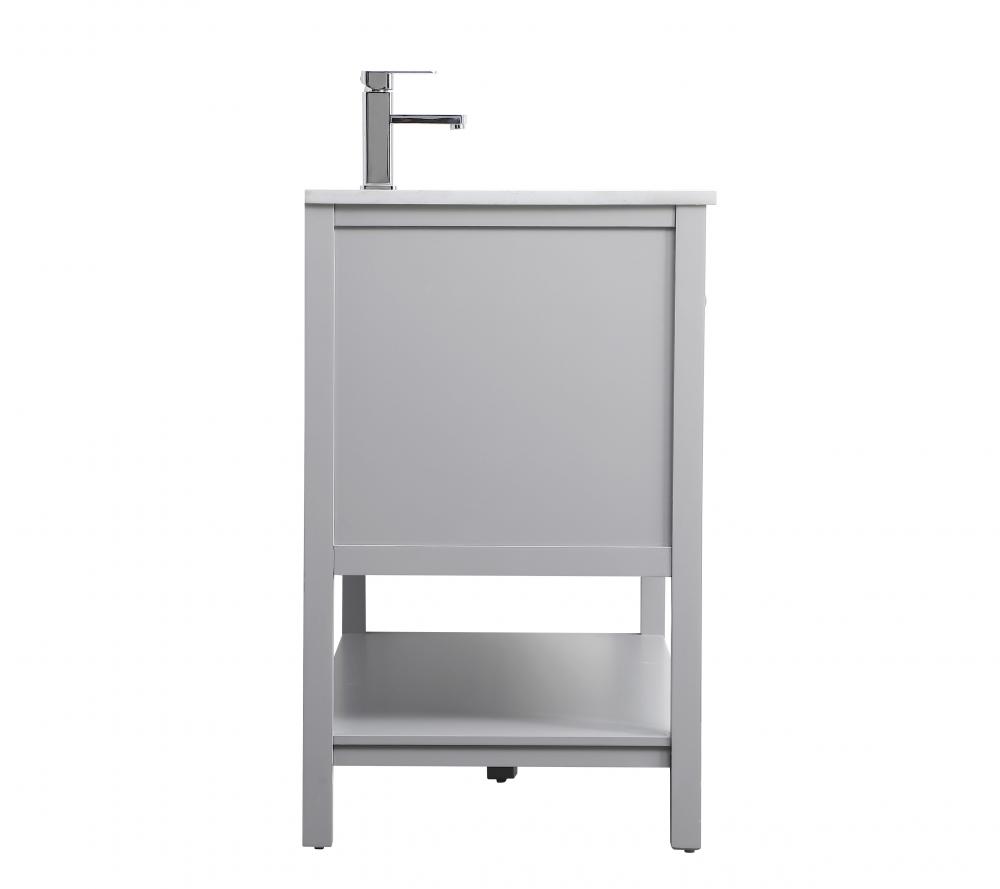 Boasting a lower open shelf for additional storage, this vanity offers a practical area to display decor or stow away essentials, seamlessly blending functionality with a touch of style for your bathroom.