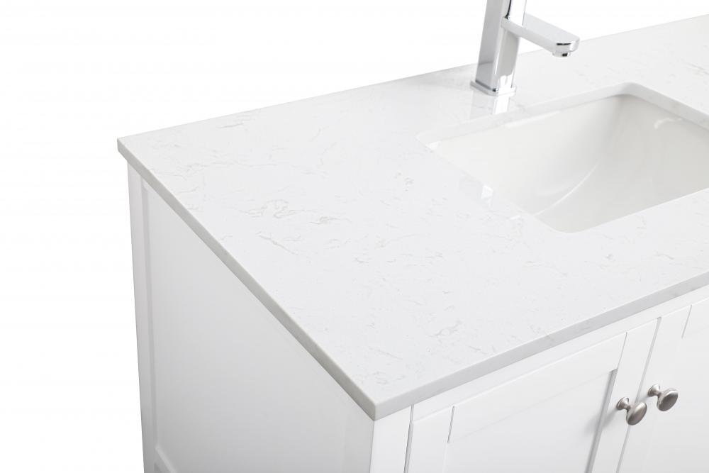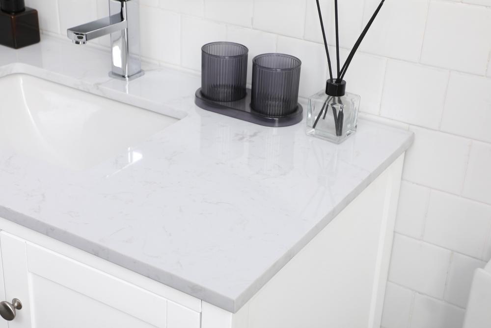 Displaying a chic straight edge cut and crafted with precision, our vanity boasts an engineered marble top that adds a dash of modern elegance to your space.
