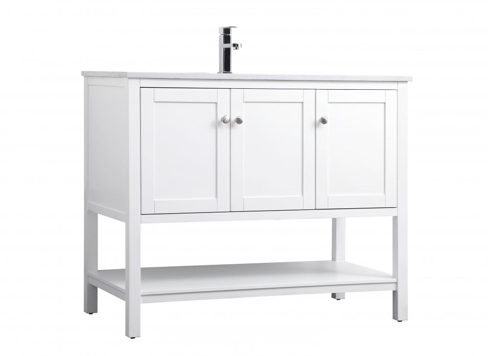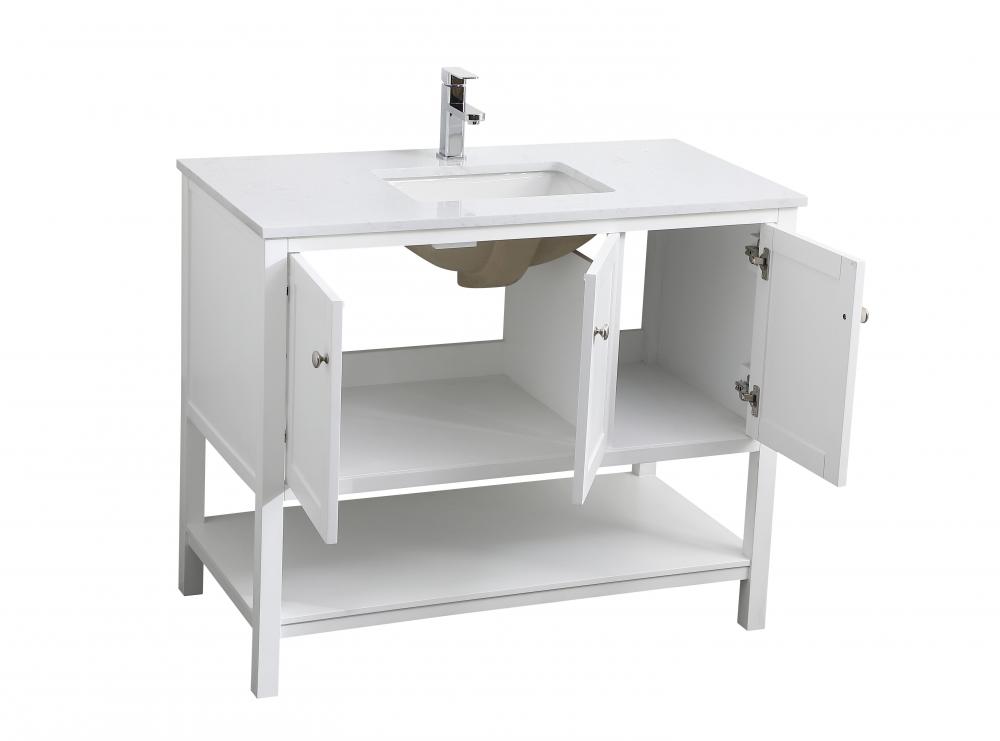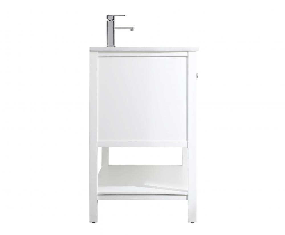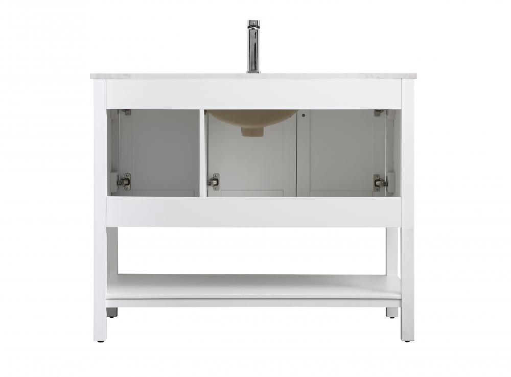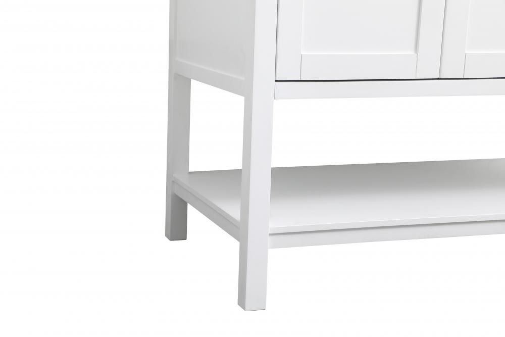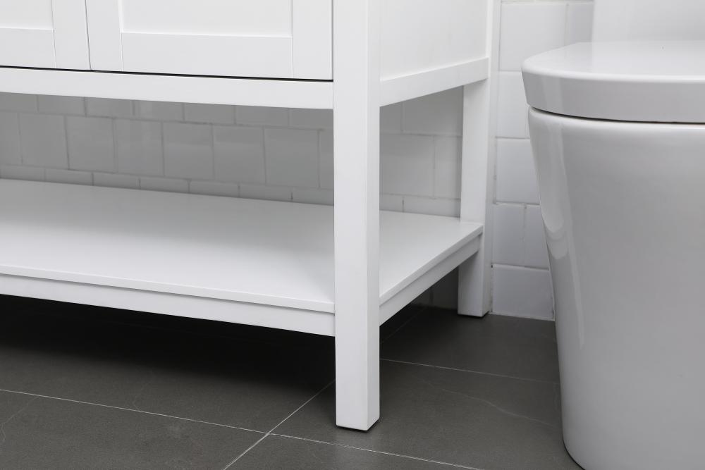 Boasting a lower open shelf for additional storage, this vanity offers a practical area to display decor or stow away essentials, seamlessly blending functionality with a touch of style for your bathroom.