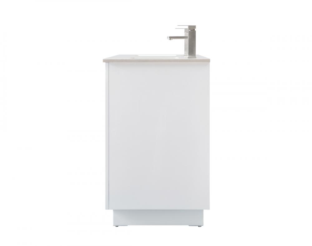 Step into a realm of modern luxury with our freestanding bathroom vanity, featuring a sleek and contemporary boxy design that sets new standards for aesthetics. The engineered marble countertop, with its crisp 0.75-inch straight edge, not only introduces sophistication but also ensures enduring durability. Convenience takes center stage with the undermount porcelain sinks, measuring 15.35 inches long, 11 inches wide, and 7 inches deep, complemented by a single predrilled faucet hole for seamless installation. Experience the art of organization through soft-closing drawers and doors adorned with high-quality bar pulls, showcasing meticulous craftsmanship in the precision of butt joint drawers. The vanity, crafted from resilient MDF material, combines elegance with durability, supported by solid wood legs that provide stability and a touch of natural warmth. Elevate your bathroom with this distinctive piece, where the fusion of form and function creates a harmonious dance of modern sophistication, redefining your daily routine with a statement in style and practicality.