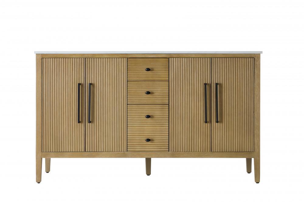 The textured fluted design on the door and drawer panels adds visual interest and elegance, creating a balance of classic charm and contemporary style.