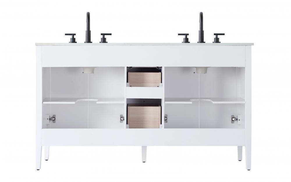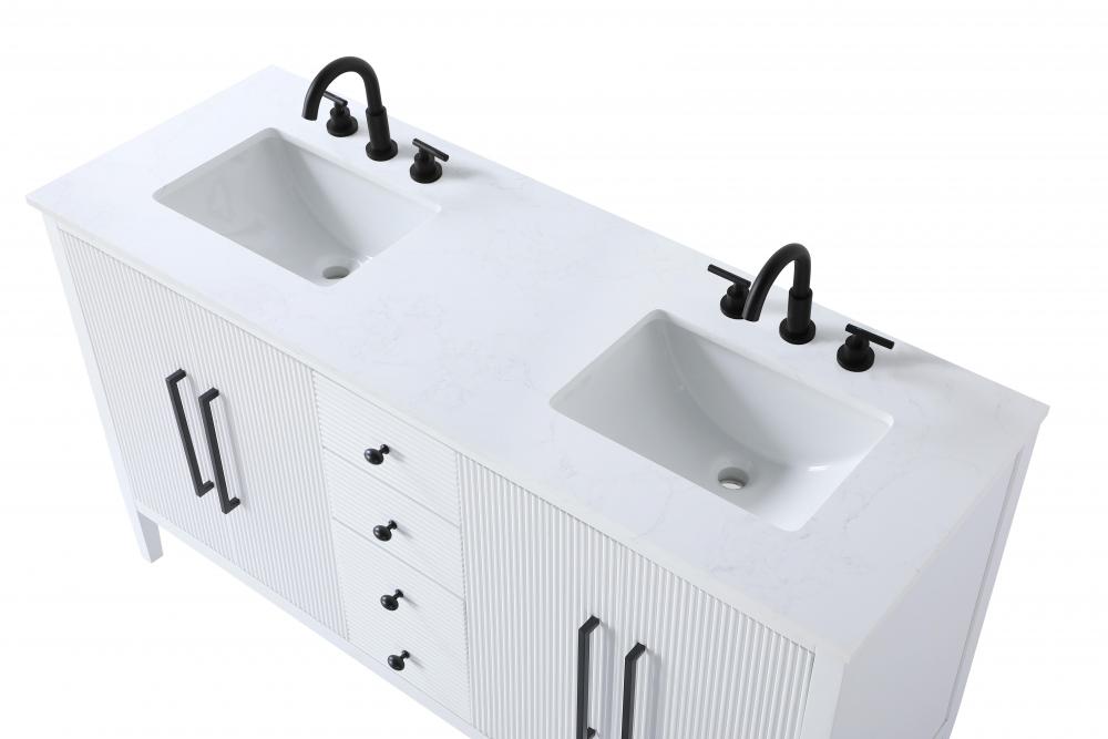 The vanity is topped with a stunning white engineered marble countertop with natural veining that adds luxurious detail and durability.