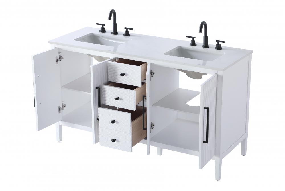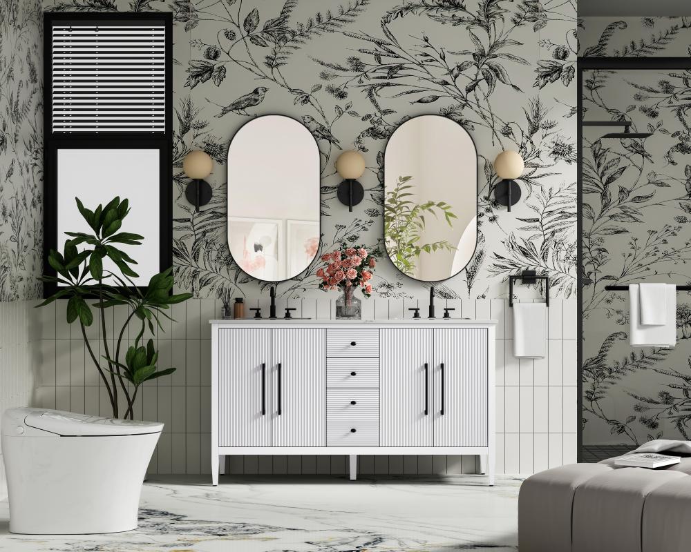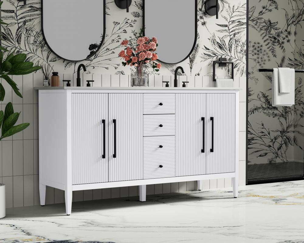 Designed with transitional elegance in mind, this bathroom vanity seamlessly blends traditional elements with modern functionality. Available in five stunning finishes, from the clean sophistication of Crisp White to the natural warmth of Honey Oak, the fluted door and drawer panels add subtle texture and charm. The white engineered marble countertop with natural veining exudes luxury, while the soft-closing doors and drawers with sleek black metal pulls offer a quiet, refined experience. Practicality is never compromised, with features like the U-shaped shelf for plumbing, deeper bottom drawer for ample storage, and pre-drilled faucet holes for easy customization. Whether your style leans modern or classic, this vanity is the perfect balance of beauty and function, appealing to customers with a taste for quality and style.