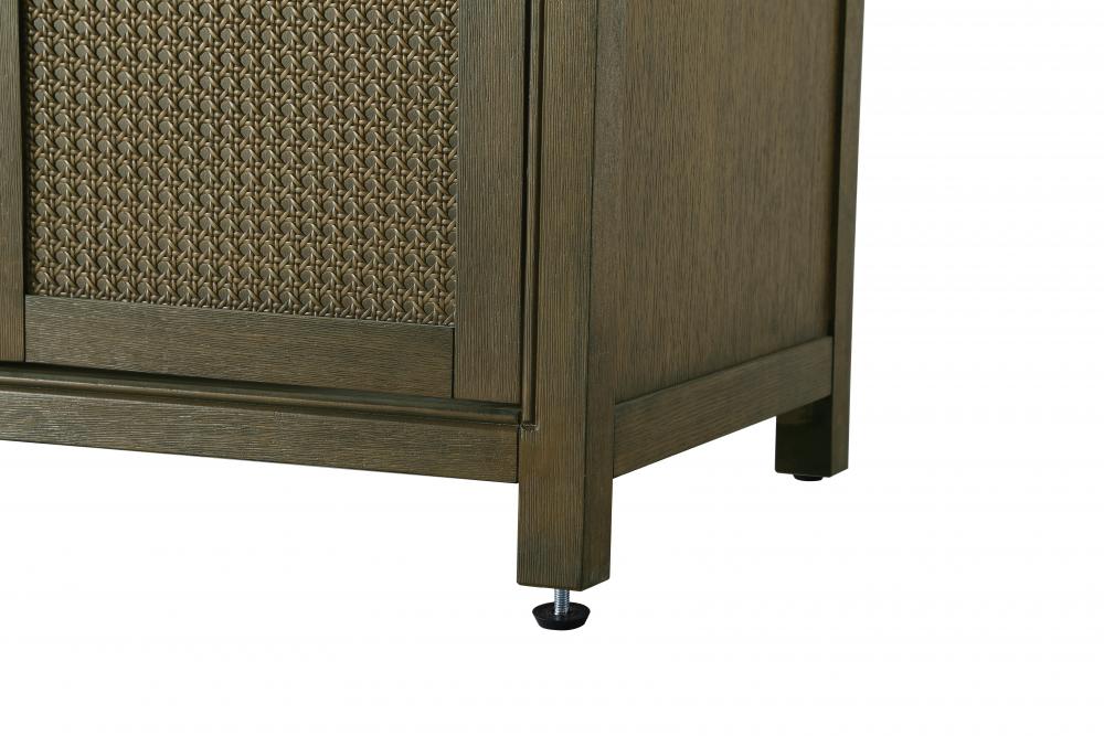 The shaker-style door panels feature a subtle caning design, adding texture and visual interest while maintaining a clean and timeless aesthetic.