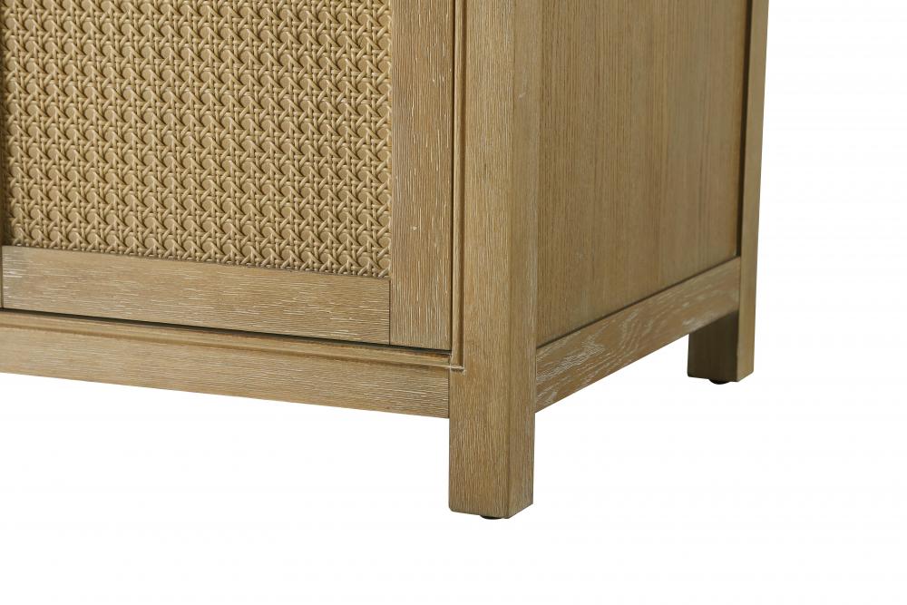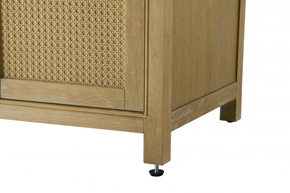 The shaker-style door panels feature a subtle caning design, adding texture and visual interest while maintaining a clean and timeless aesthetic.