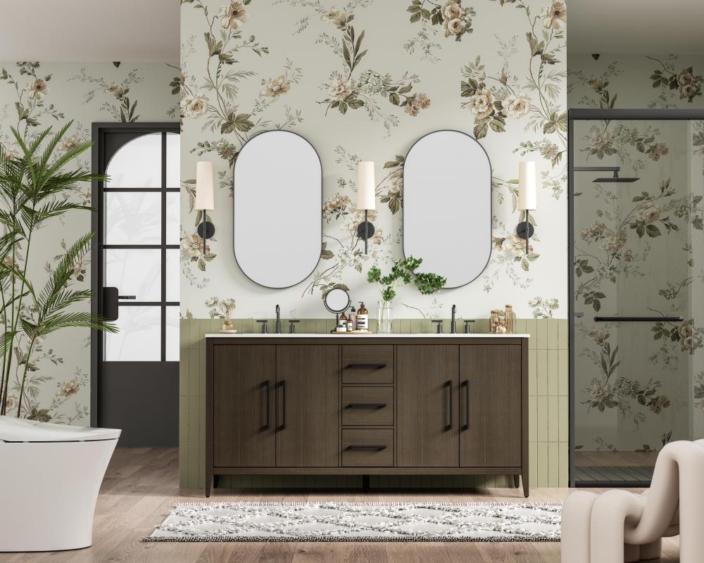 The minimalist flat door panels create a sleek, modern appearance, perfect for blending into transitional and contemporary bathroom designs.