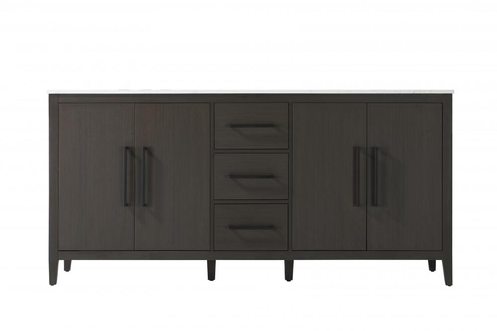The flat-panel soft-closing drawers feature thin black barpulls, offering a smooth and quiet operation, adding a luxurious touch to everyday use.